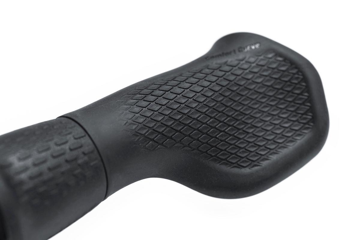 NF Ergonomics Philosophie angewandt auf ein entspannendes Fahrerlebnis, Comfort Curve geformte Oberseite zur maximierung der Handauflagefläche, Nach innen abgesenkter Flügel zur Entlastung des Handgelenks, Traction Waves auf der Unterseite für einen besseren Halt, Innenspreizklemmung, Kompatibel mit Nexus und Nuvinci Drehgriffschaltungen