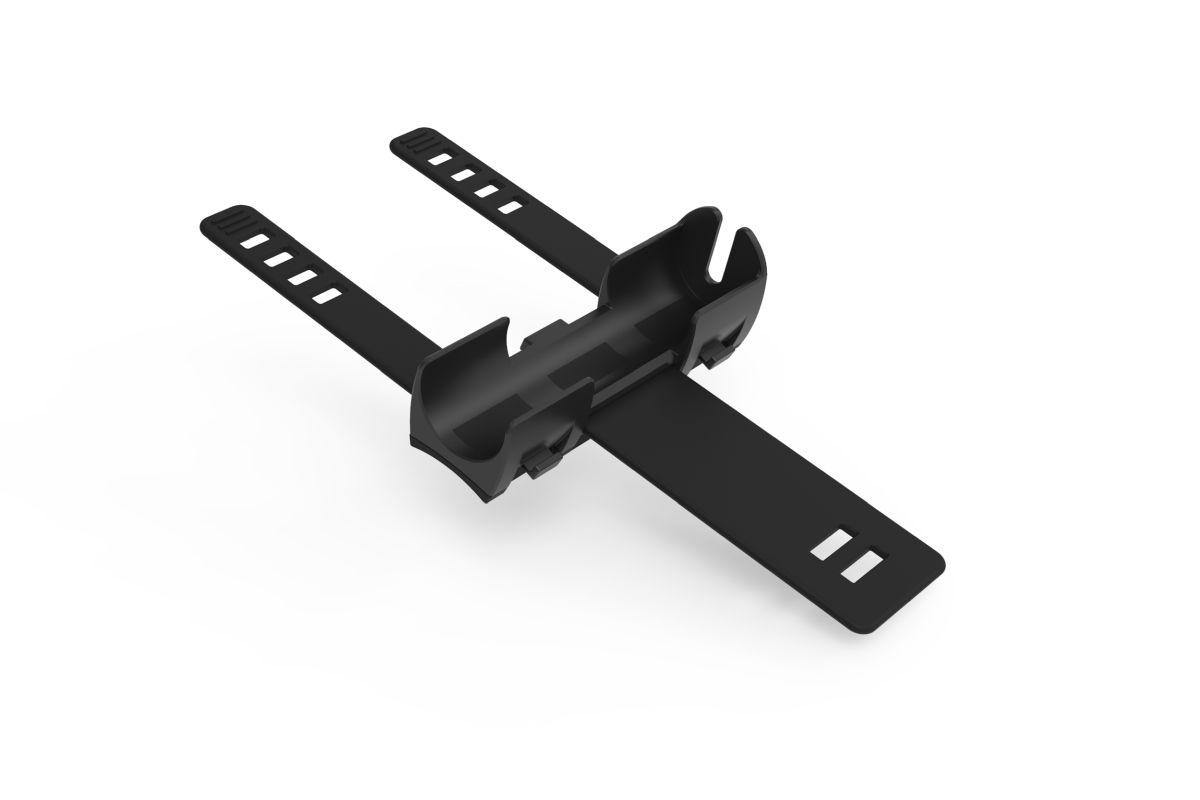 Halterung zur Befestigung von CORVID Kabelschlössern am Rahmen, leichte Bauweise, zwei Silikonbänder schützen Rahmen und Schloss vor Kratzern