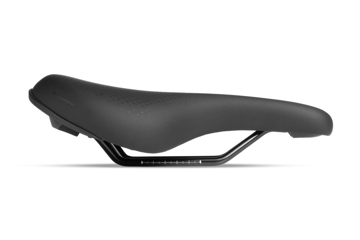 Auf die männliche Anatomie abgestimmter Ergo-Relief-Channel mit Aussparung, Hohes Heck stützt das Becken beim Fahren, Druckentlastung durch Deep-Shell Technologie, Dual-Schaum Polsterung, Y-Shape Technologie, Hochwertiger PU Bezug, Integrierte Satteladapteraufnahme (SILink), Optimiert für Sitzposition Bent Forward (Saddle Finder B1)
