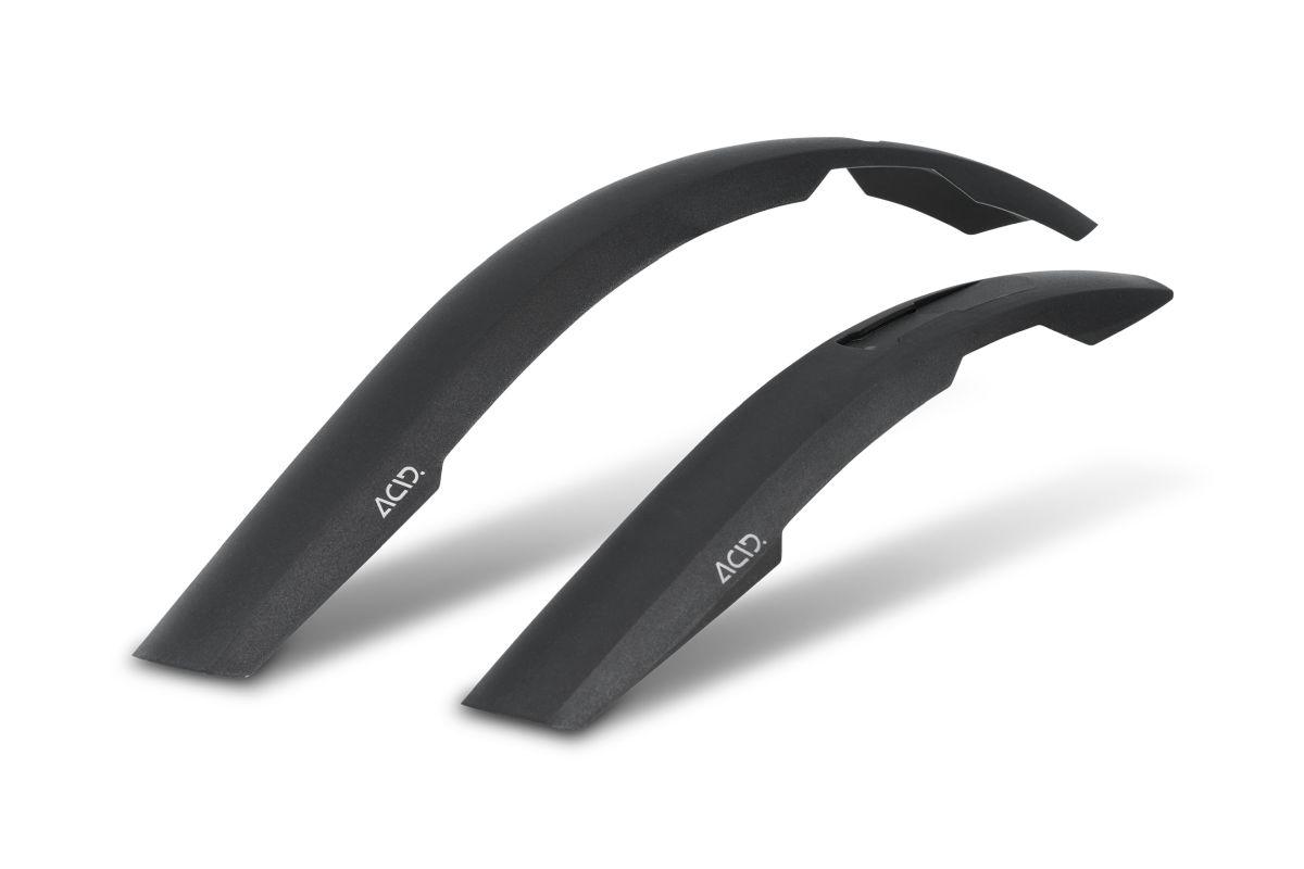 Mit dem neuen ACID Schutzblechset MUD ROOKIE haben wir Kinderschutzbleche in sportlicher Optik entwickelt, die auf unser Mudguard-Portfolio abgestimmt sind. An CUBE Bikes werden sie mit einem winkelverstellbaren Sitzstrebenadapter montiert. Für alle anderen Bikes liegt ein universelles, klassisches Winkelblech bei. Dank der seitlichen Cut-outs lassen sie sich auch an Bikes mit V-Brakes montieren. Dieses Set passt auf 24"-Fahrräder mit einer maximalen Reifenbreite von 2,25".