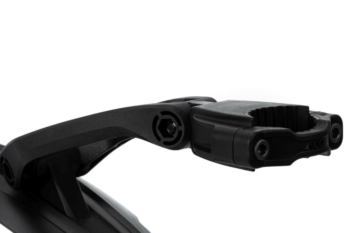 Schutzblech hinten im Enduro-Style für 29" Mountainbikes, einfache Montage mittels Schraub-Klemme, Gummierungen verhindern Verdrehen, optimale Einstellbarkeit durch zweigelenkigen Arm, matt-glänzendes Oberflächenfinish