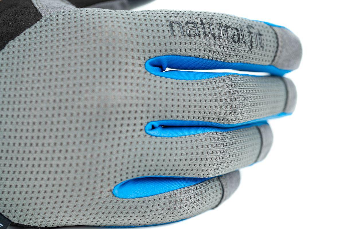 CUBE Natural Fit Polsterung, Grip-Print an Handinnenfläche und Fingerspitzen, Touchscreen Funktion am Zeigefinger, atmungsaktives Obermaterial, belüftete Handinnenfläche, nahtlose Fingerspitzenkonstruktion, verstellbarer Bund, Nano Klettverschluss mit Grip-Print