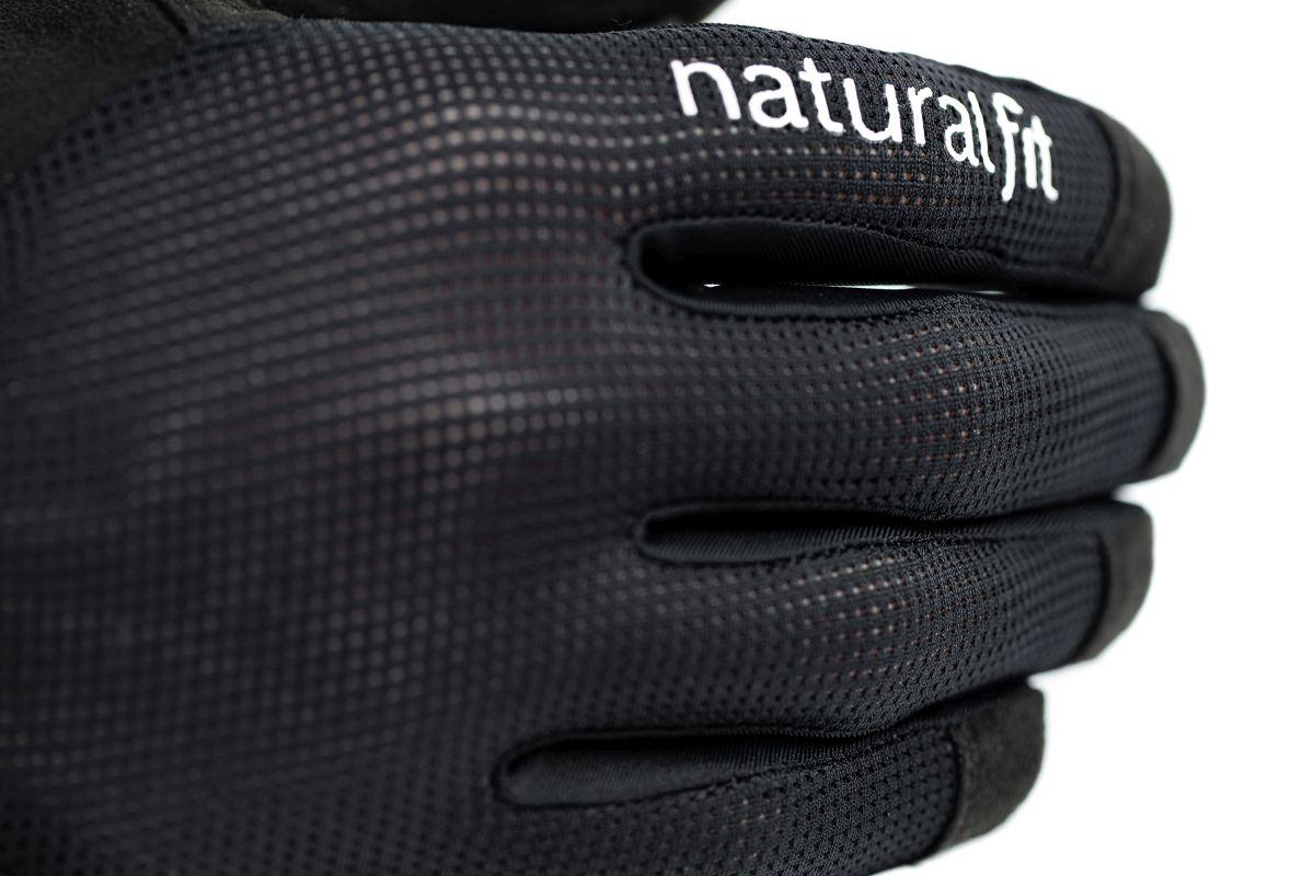 CUBE Natural Fit Polsterung, Grip-Print an Handinnenfläche und Fingerspitzen, Touchscreen Funktion am Zeigefinger, atmungsaktives Obermaterial, belüftete Handinnenfläche, nahtlose Fingerspitzenkonstruktion, verstellbarer Bund, Nano Klettverschluss mit Grip-Print