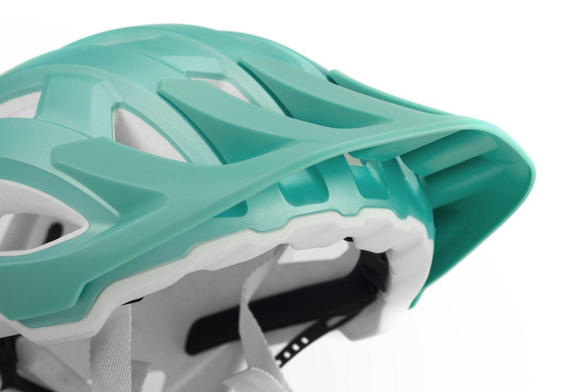 MTB Trail-Helm, zusätzlicher Schutz im Bereich des Hinterkopfes durch tiefgezogene Heckpartie, 18 große Belüftungsöffnungen, optimierte Ventilationskanäle, abnehmbares Visier, einhändig bedienbares und höhenverstellbares SILC 180 Fit System für eine optimale Passform, Double-In-Mould Konstruktion, Flat Divider für eine beidseitige Gurtbandverstellung, X-Lock Befestigungssystem, herausnehmbare und waschbare Polster, Rastersteckschloss mit Kinnpolster, Natural Fit Konzept, mattes Finish