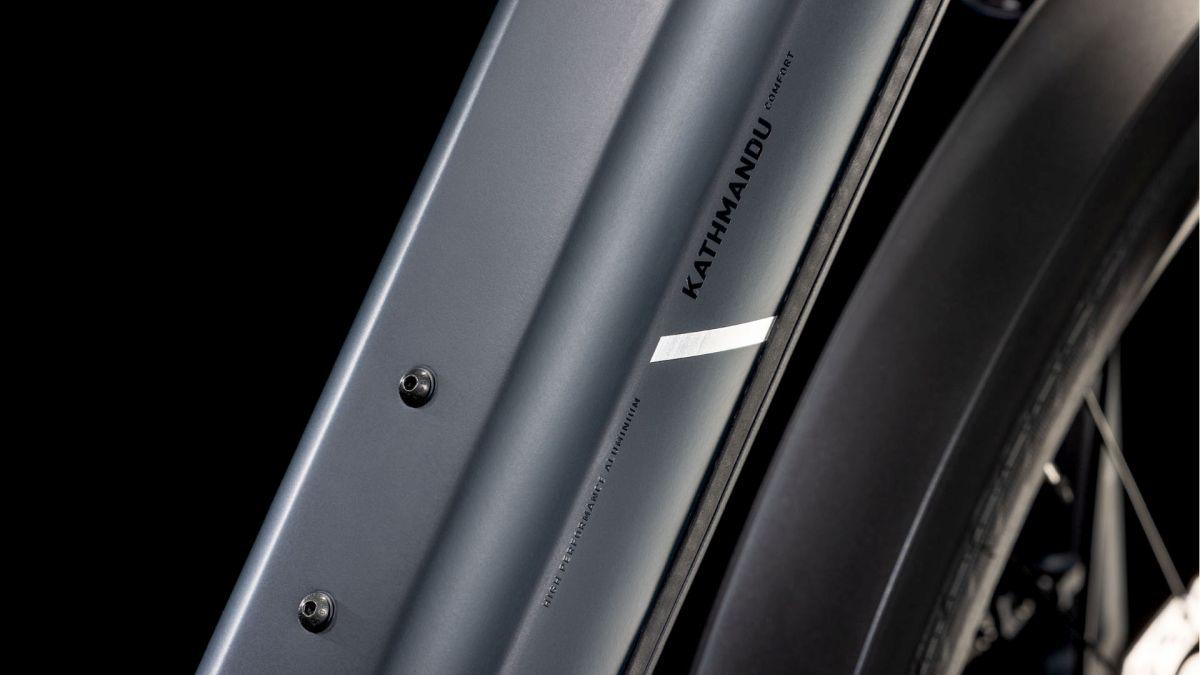 Der Rahmen des CUBE Kathmandu Hybrid sieht auf den ersten Blick vielleicht unspektakulär aus – der zweite enthüllt seine Eleganz, seine Klasse und die vielen Innovationen und cleveren Details. Der samt 800 Wh PowerTube Akku ästhetisch und sauber ins Design integrierte CX Motor von Bosch ist dabei nur der Anfang. Unsere Efficient Comfort Geometry arbeitet harmonisch mit der 100 mm Federgabel Hand in Hand, was die Kontrolle vor allem unter schwierigen Bedingungen optimiert. Dazu die interne Zugverlegung, die der cleanen Optik des Chassis in die Karten spielt und den Wartungsaufwand maßgeblich reduziert. Was noch? Ein vielseitiges, beinahe unzerstörbares UDH für einfache Ersatzteilverfügbarkeit, ein integrierter Kettenschutz und unser stabiler, robuster, überaus formschöner integrierter Gepräckträger IC 3.0, auf dem alles Platz findet, was auf Abenteuertour mit muss.