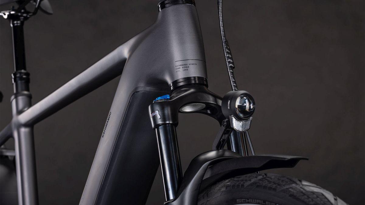 Der Rahmen des CUBE Kathmandu Hybrid sieht auf den ersten Blick vielleicht unspektakulär aus – auf den zweiten erschließen sich jedoch seine Eleganz und Klasse, außerdem die vielen Innovationen und cleveren Details. Dabei ist der samt 800 Wh PowerTube Akku ästhetisch und sauber ins Design integrierte CX Motor von Bosch nur eins der Highlights. Ein weiteres ist unsere Efficient Comfort Geometry, die harmonisch mit der 100 mm Federgabel Hand in Hand arbeitet, was die Kontrolle vor allem bei schwierigen Bedingungen optimiert. Dazu die interne Zugverlegung, die den cleanen Look des Chassis unterstreicht. Was noch? Ein vielseitiges, beinahe unzerstörbares UDH für einfache Ersatzteilverfügbarkeit, ein integrierter Kettenschutz und unser stabiler, robuster, überaus formschöner integrierter Gepäckträger IC 3.0, auf dem alles Platz findet, was auf Abenteuertour mit muss.