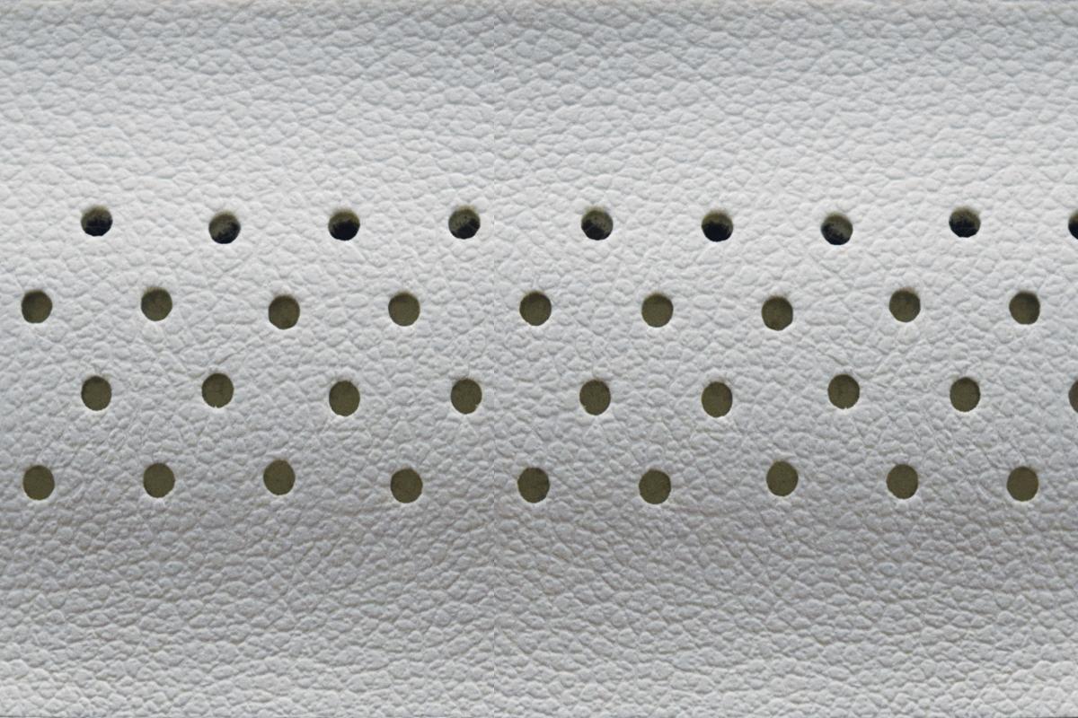 leichtes, strapazierfähiges und griffiges Mikrofasermaterial mit PU-Leder und Lochstruktur, bewährte Klebefläche an der Unterseite