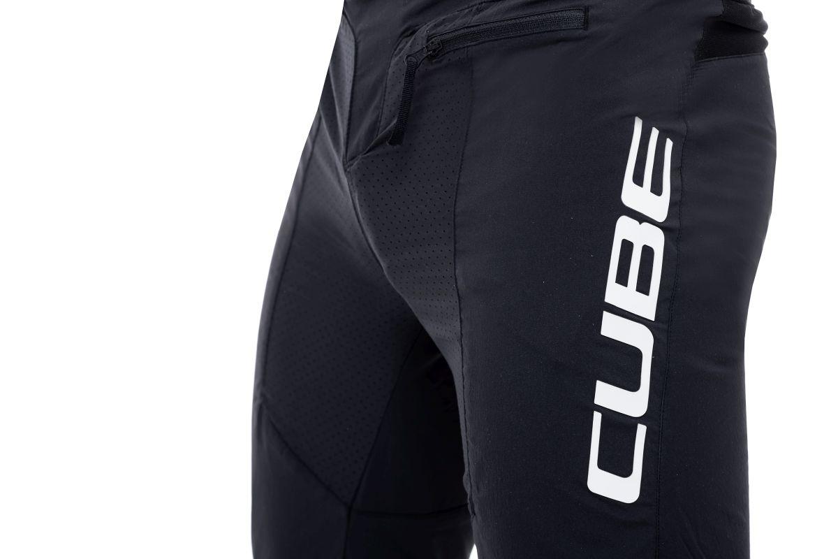 Die CUBE MTB Pants DH ist Downhillern und Freeridern auf den Leib geschneidert. Der verstellbare Bund, elastische Einsätze und schlau platzierte Ventilationszonen machen sie super komfortabel. Knie- und Gesäßbereich sind verstärkt – so kann auch ein kleiner Crash der Hose nichts anhaben. In der Tasche mit Reißverschluss bleibt Kleinkram bei jedem Fahrmanöver sicher verstaut.