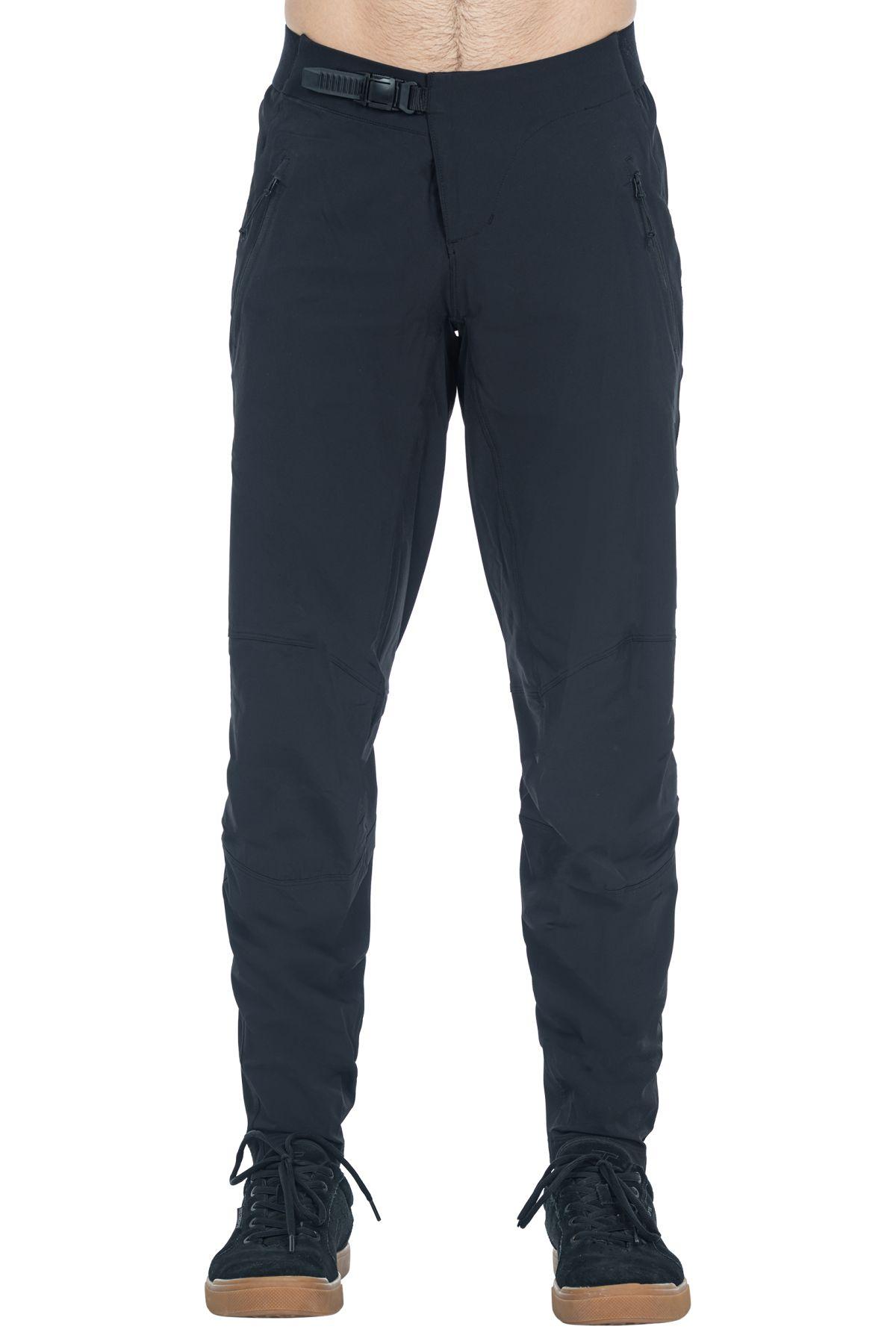 Ratschenverschluss für sicheren Komfort und schnelle Handhabung unterwegs, Eingrifftaschen mit Reißverschluss, schmal zulaufende Beinabschlüsse zum Schutz vor Hängenbleiben, beständige, wasserabweisende DWR-Beschichtung, elastischer Gummibund, Model ist 186 cm groß, Model trägt Größe L