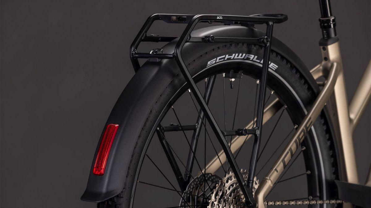 Auf den ersten Blick sieht der Nuride Hybrid Trapezrahmen vielleicht unspektakulär aus, doch wer genau schaut, wird von seiner subtilen Eleganz und den innovativen Details begeistert sein. Neben einer Federgabel mit 100 mm Federweg für ein Plus an Fahrkomfort und Kontrolle haben wir das Chassis mit großzügiger Reifenfreiheit (sogar inklusive der mitgelieferten Schutzbleche) ausgestattet. Im Inneren verlaufende Züge unterstreichen die cleane Optik. Ebenso harmonisch ins Rahmendesign integriert sind der Bosch CX Antrieb und der 800 Wh PowerTube Akku. On top gibt's einen integrierten Kettenschutz, serienmäßig verbaute Schutzbleche, Lichter, einen Seitenständer und unseren stabilen semi-integrierten Gepäckträger 2.0. Da kann das nächste Zweiradabenteuer direkt starten, oder?