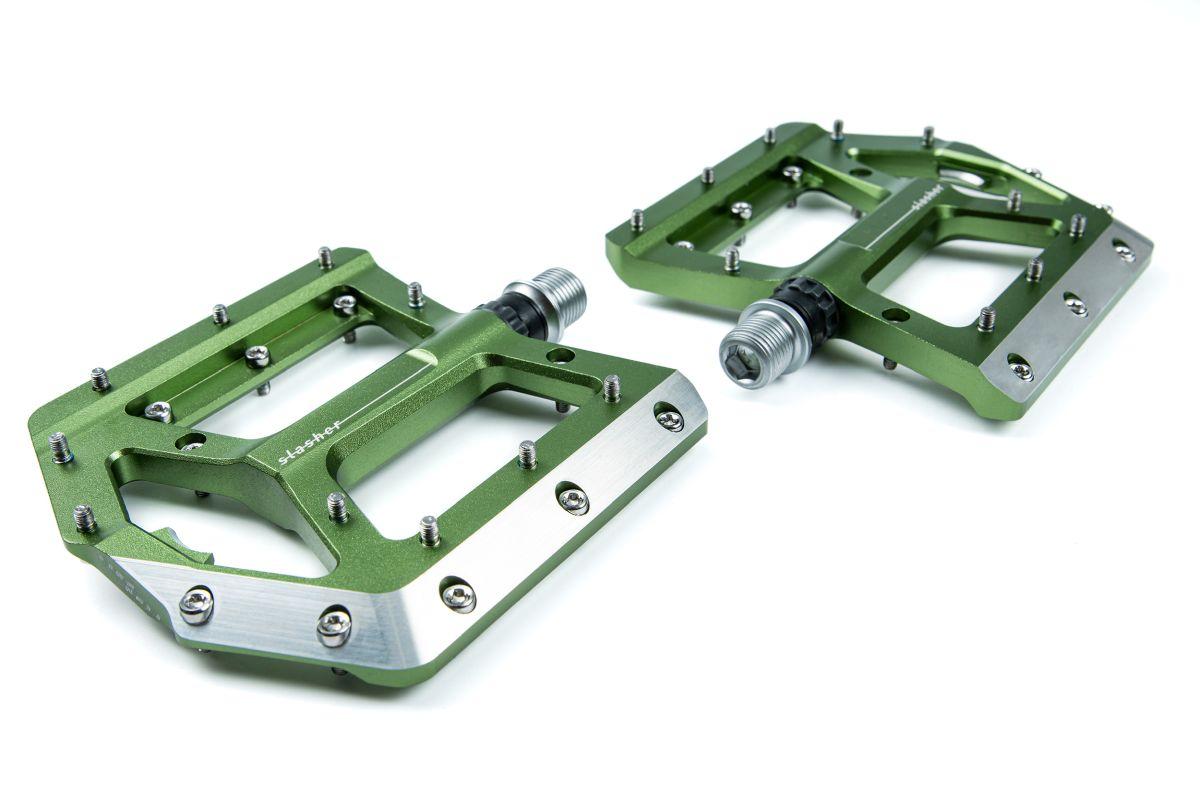 Hier im Bikepark kenne ich jeden Anlieger, jeden Sprung und jede Wurzel. Adrenalin pur! Auf meine Slasher Pedale kann ich mich dabei voll verlassen. Mit ihren einstellbaren Pins und der großen Standfläche fühle ich mich auch im gröbsten Wurzelteppich sicher mit dem Bike verbunden und kann mich doch sofort davon lösen, wenn der Trick mal nicht so klappt wie geplant.