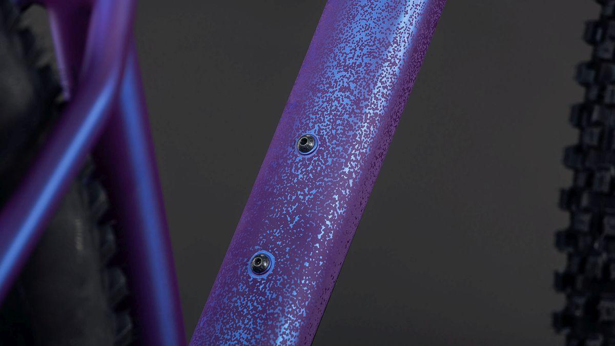 Bergab geht's beim ambitionierten Trail-Riding ja immer irgendwie – aber „irgendwie" ist dem Reaction TM nicht gut genug. Mit 65° Steuerrohrwinkel, 73.5° Sitzrohrwinkel und niedriger Überstandhöhe fährt sich dieser Rahmen auf ruppigen, anspruchsvollen Trails konsequent stabil und zuverlässig. Dank kurzen Kettenstreben befindet sich das Hinterrad direkt unter dem Fahrer, was das Handling präzisiert und die Traktion perfektioniert. Außerdem haben wir genügend Platz für die Montage von Reifen bis 2.6 Zoll gelassen. Dazu kommen standardmäßig im Inneren verlaufende Züge für die versenkbare Sattelstütze und ein UDH Schaltauge für einfache Ersatzteilverfügbarkeit. Ebenso robust gibt sich unser stabiler spritzgegossener Kettenschutz für geräuscharmes Abfahren – und dank der ISCG Kettenführung bleibt die Kette jederzeit auf Spur.
