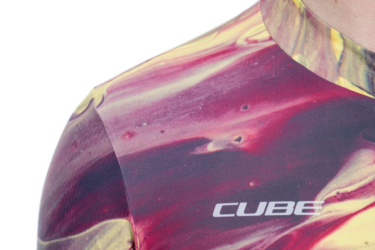Extravagant. Unser neues CUBE ROAD/XC Kurzarmtrikot im Painting Design ist perfekt angepasst auf den Radsport. Unser athletischer CUBE V-Shape Schnitt ist Rumpf eng anliegend, bietet dagegen im Schulterbereich viel Bewegungsfreiheit. Der durchgehende Reißverschluss vorne erleichtert das An- und Ausziehen, während der silikonbedruckte Saum und der vorgeformte Kragen einen sicheren und zugfreien Sitz garantieren. In der 3-geteilten Rückentasche ist zudem noch eine seitliche, wasserdichte Zippertasche für Wertsachen versteckt.
