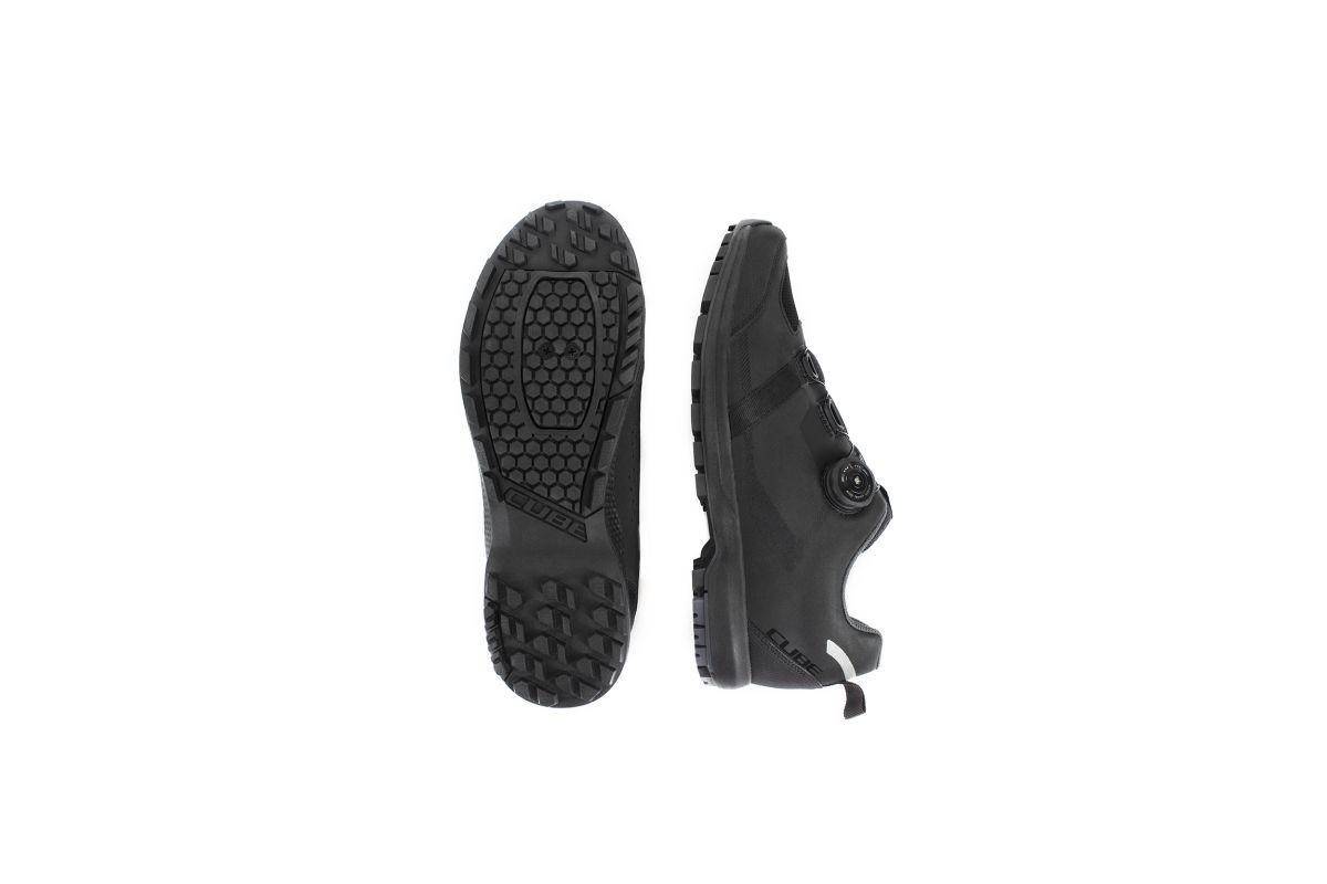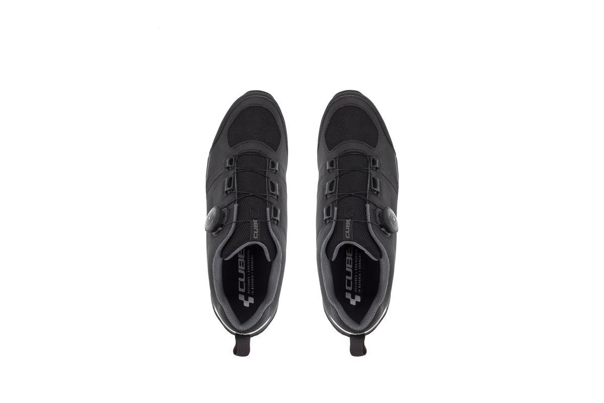 Stylischer All Terrain Schuh mit fortschrittlichem Drehverschluss und toller Passform dank ergonomisch optimierten CUBE Natural Fit Leisten und Innensohle. Clevere Features wie die Einstiegshilfe und der Laceholder machen das Leben leichter, während die griffige Gummi-Außensohle für Klickpedale auch beim Gehen tollen Halt gibt. Das robuste Obermaterial und die verstärkte Zehenkappe schützen den Fuß, dank Luftlöcher und Mesh-Konstruktion bleibt selbiger aber immer angenehm belüftet. Das reflektierende Fersenelement schenkt zusätzliche Sicherheit durch mehr Sichtbarkeit bei schlechten Lichtverhältnissen.