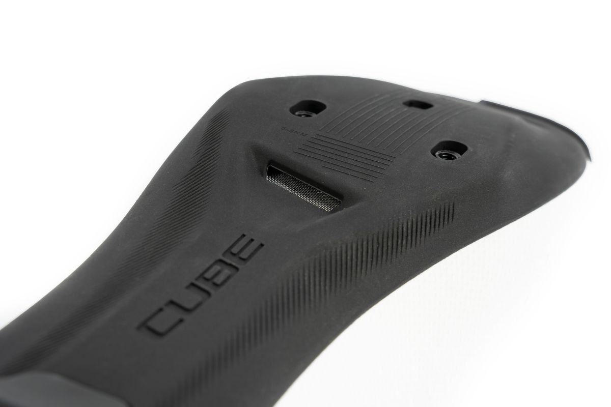 Der CUBE SYDRIX Schuh vereint hervorragende Belüftung mit sicherem Verschluss und bietet Rennradfahrern sowohl Komfort als auch effiziente Kraftübertragung. Die Glasfasersohle mit Belüftungskanälen und austauschbarem Fersenstollen garantiert, dass jede Watt Leistung direkt auf die Pedale übertragen wird, während die verstärkte Fersenkappe Stabilität und Halt verbessert. Der Disc-Verschluss ist schnell und einfach zu bedienen und verteilt in Kombination mit einem asymmetrischen Design den Druck gleichmäßig für optimalen Komfort und Passform. Die verstärkte Zehenbox bietet zusätzlichen Schutz in diesem empfindlichen Bereich. Das perforierte Obermaterial und die NF Ergonomics-Innensohle sorgen für gute Belüftung, Polsterung und Druckverteilung, was den ganzen Tag über Fahrkomfort gewährleistet.
