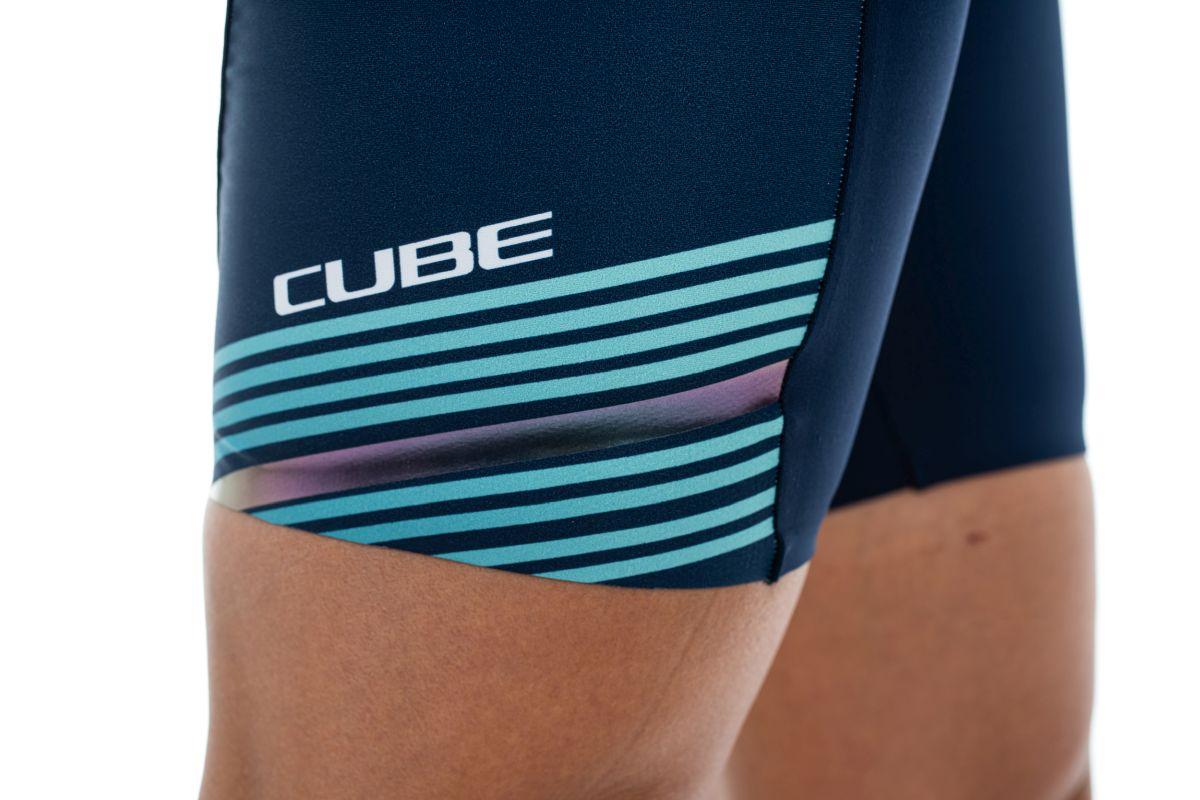 Die CUBE TEAMLINE WS Short ist die perfekte Wahl für lange Tage im Sattel. Der haltbare und schnell trocknende Material-Mix sorgt für besten Tragekomfort. Das CUBE WS Team Pad, hergestellt in Italien, wurde speziell für die weibliche Anatomie designt und konzipiert. Zudem verhindert der elastische Silikonsaum am Bein lästiges Verrutschen. Reflektierende Elemente bieten zusätzlich mehr Sichtbarkeit und damit Sicherheit im Straßenverkehr.