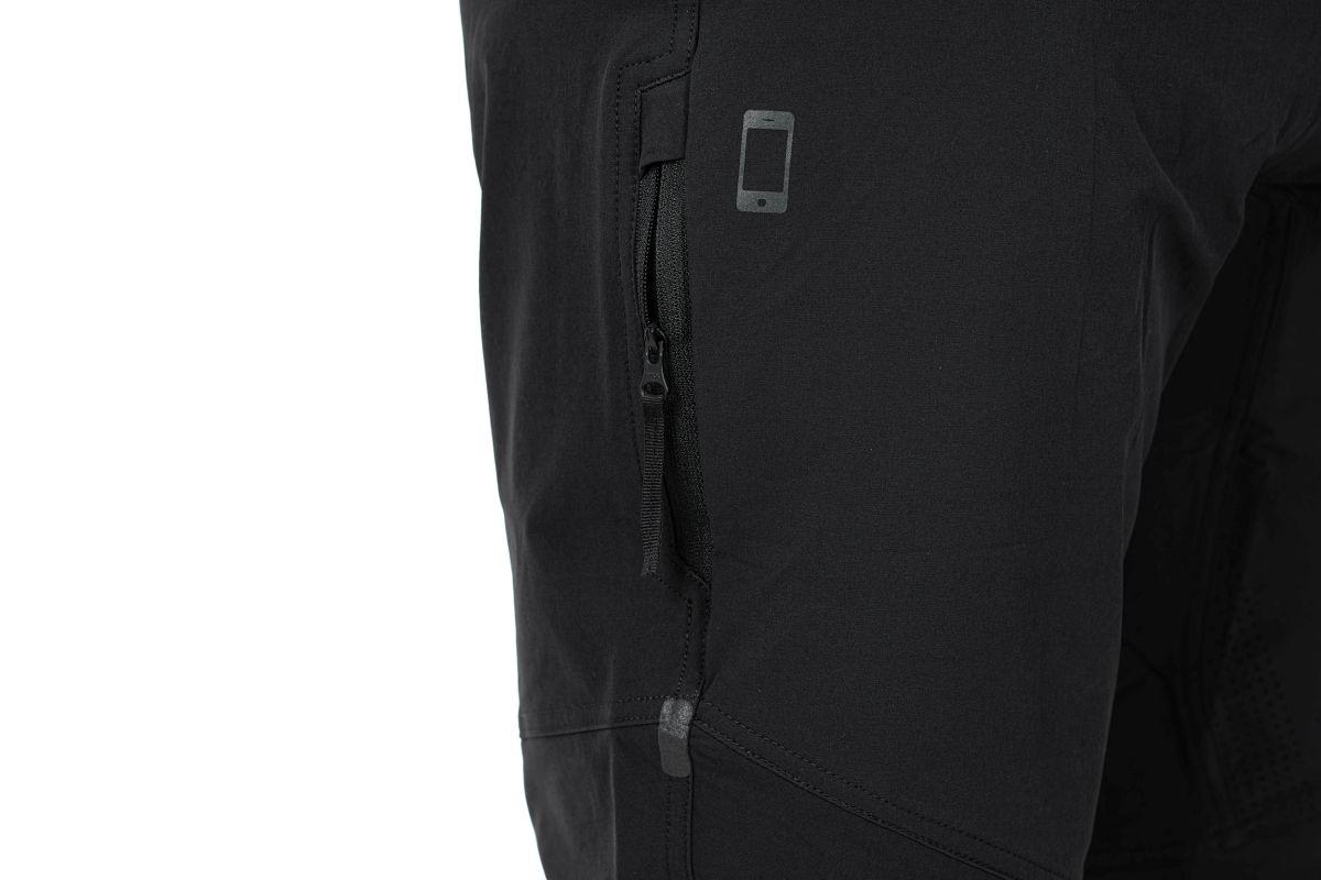 robustes, leichtes Material, Lasercut für Belüftung, reflektierende Drucke, große Zippertasche fürs Handy, Zippertasche für Liftkarte, Schlüssel etc., Verschluss mit Druckknopf, Klett und Zipper, Bund weitenregulierbar durch Klett, Stretcheinsatz hinten, Protektorenkompatibel, Aufhänger zum Trocknen, Model ist 186 cm groß, Model trägt Größe L