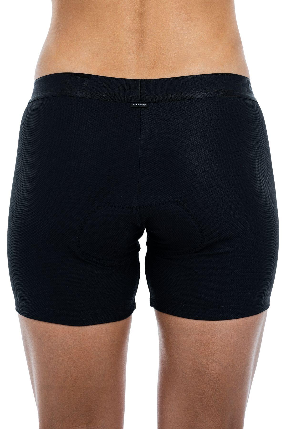atmungsaktives, elastisches Material, ergonomischer Schnitt, Mesh-Material für optimale Klimakontrolle, hochwertiges CUBE WS liner Pad, Model ist 168 cm groß, Model trägt Größe S