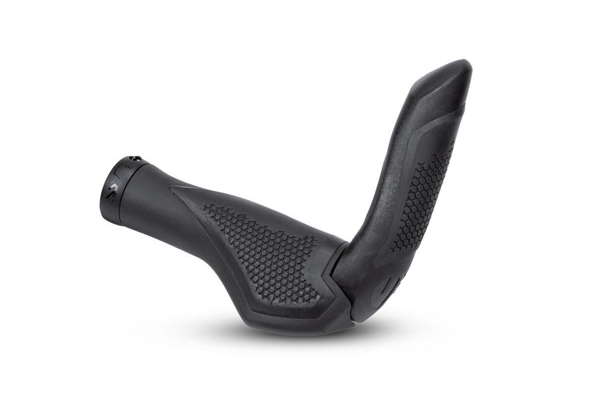 Natural Fit Philosophie angewandt auf ein entspannendes Fahrerlebnis, Triple-Density Material, Auflage mit Shock X Material absorbiert hochfrequente Vibrationen, Innenklemmung, in zwei Größen erhältlich, hochwertige Cold Forged Aluminiumklemme, ergonomisch optimierte Dual-Density Barend large, integrierte Klemmung