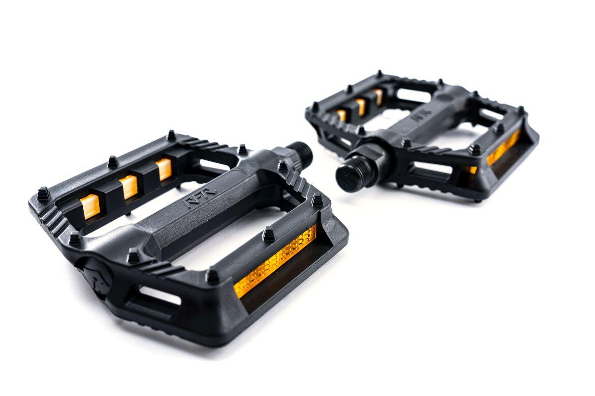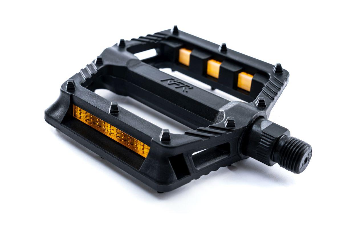 Flat Pedal mit integrierten Anti-slip Pins, integrierter Reflektor, One Piece Kunststoffgehäuse