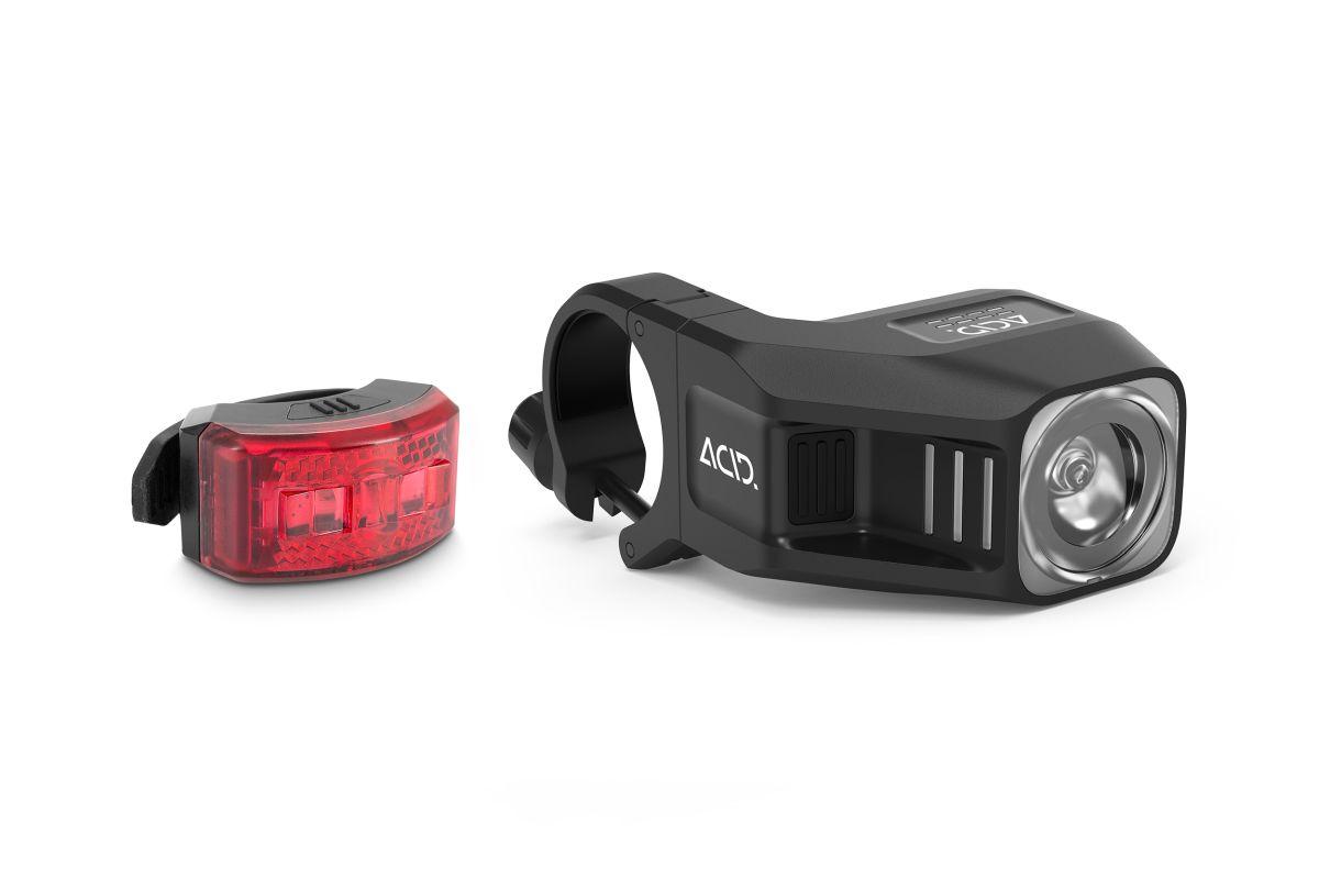 Inhalt: ACID Frontlicht PRO 80 + ACID Rücklicht PRO, StVZO zugelassen, 80 Lux, inkl. Micro-USB-Ladekabel, Schutzklasse IPX5