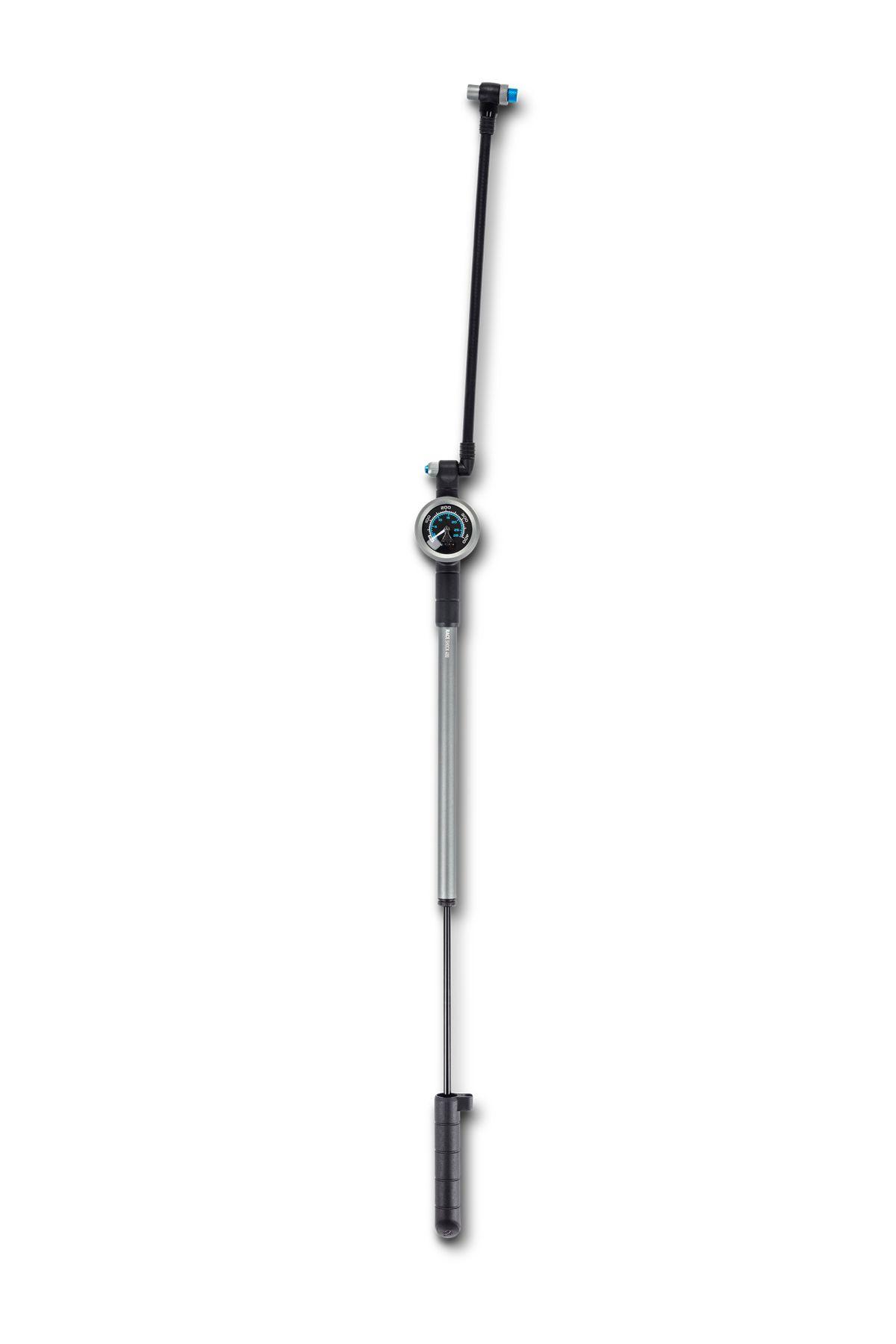 High-End Dämpferpumpe mit 2-stufigem Schrader-Ventilkopf für sicheres Abschrauben ohne Luftverlust. Speziell für höhere Drücke bis 400 psi und mit NF Ergonomics Griff. Exakte Fahrwerkseinstellung dank Präzisionsmanometer und Luftablass-Ventil zum Feinjustieren.