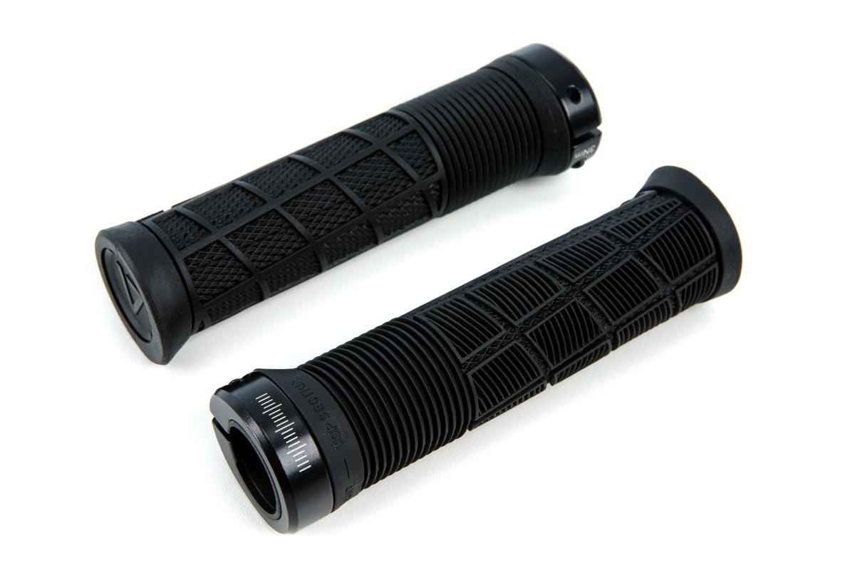 NF Ergonomics Philosophie angewandt auf höchste Kontrolle bei extremen Fahrten, Mushroom Cushioning Bereiche zum Absorbieren von Vibrationen und Schlägen, Nach innen gerichtete Anti-Slip Struktur um das Abrutschen vom Griff zu verhindern, Angewinkelte Waffel Struktur auf der Unterseite für einen besseren Halt, Innenklemmung, Hochwertige Cold Forged Aluminiumklemme, ACID GILink zur Montage von Zubehör Teilen wie Werkzeugen