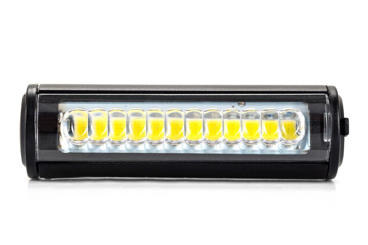 Sicherheitslicht "weiß" mit 12 SMD LEDs, 120 Lumen, integrierter Lithium-Polymer-Akku, 6 Lichtfunktionen, 2-stufiger Batterieindikator, spritzwassergeschützt, Silikonbandbefestigung, integrierter Befestigungsclip