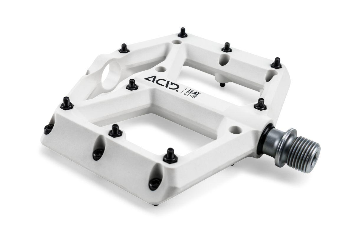 Hier im Bikepark kenne ich jeden Anlieger, jeden Sprung und jede Wurzel. Adrenalin pur! Auf meine ACID FLAT Pedale kann ich mich dabei voll verlassen. Mit ihren einstellbaren Pins und der großen Standfläche fühle ich mich auch im gröbsten Wurzelteppich sicher mit dem Bike verbunden und kann mich doch sofort davon lösen, wenn der Trick mal nicht so klappt wie geplant.