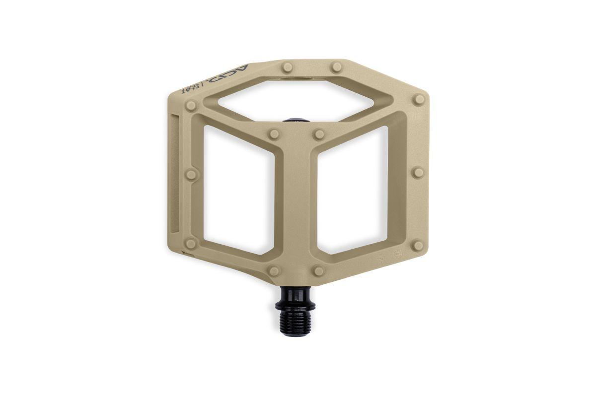 leichtes Flat-Pedal, Nylon-verstärkter-Kunststoff-Körper und CrMo Achse, angefaste Kanten für erhöhte Bodenfreiheit in Kurven, große Standfläche, flache Bauweise, zwölf Pins pro Seite, LSL-Bushing, integrierte Reflektoren