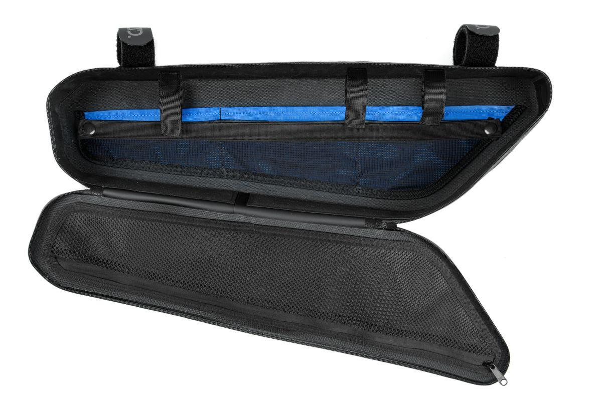 verschweißte Konstruktion, wasserdicht, abriebfestes Außenmaterial, PVC-frei, flexible Anbringung durch umlaufendes MOLLE-System, reflektierende Elemente auf beiden Seiten, Seitenfach, vielfältige Anbringungsmöglichkeiten für diverse Objekte im Inneren, farbig abgesetzte Fächer im Inneren der Tasche, selbsterklärend, intuitive Nutzung durch eine abgestimmte Konstruktion, passend für verschiedene Rahmentypen