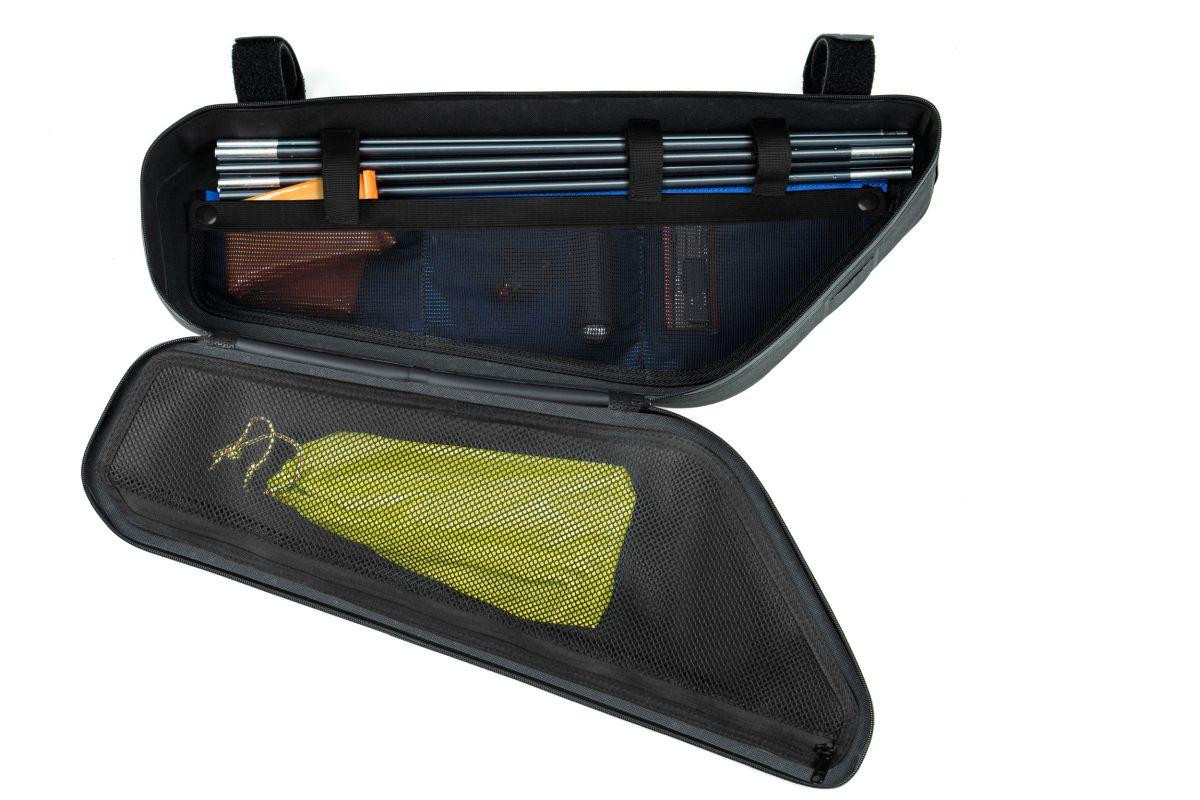 verschweißte Konstruktion, wasserdicht, abriebfestes Außenmaterial, PVC-frei, flexible Anbringung durch umlaufendes MOLLE-System, reflektierende Elemente auf beiden Seiten, Seitenfach, vielfältige Anbringungsmöglichkeiten für diverse Objekte im Inneren, farbig abgesetzte Fächer im Inneren der Tasche, selbsterklärend, intuitive Nutzung durch eine abgestimmte Konstruktion, passend für verschiedene Rahmentypen