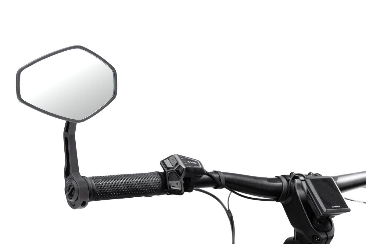 Lenker-Innenklemmung 17-22 mm, universell anpassbar durch ein verstellbares Kugelgelenk, Gummilippe schützt bei Kollisionen und vor Kratzern, Große Spiegelfläche