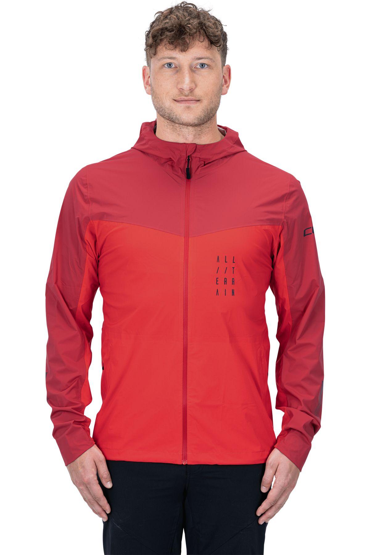 dauerhaft wasserabweisendes 2,5-Lagen-Funktionsmaterial, durchgehender wasserabweisender Frontreißverschluss, getapte Nähte, Saum verstellbar durch integrierten Kordelzug, Aussparung am Saum um Ballon-Effekt bei eng gezogenem Saum zu vermeiden, verstellbare Kapuze mit zusätzlichem Schirm, Kapuze eignet sich zum Tragen unter dem Helm, Seitentaschen mit verdecktem Reißverschluss, Perforation zur Ventilation unter den Armen, elastischer Ärmelsaum, reflektierende Elemente