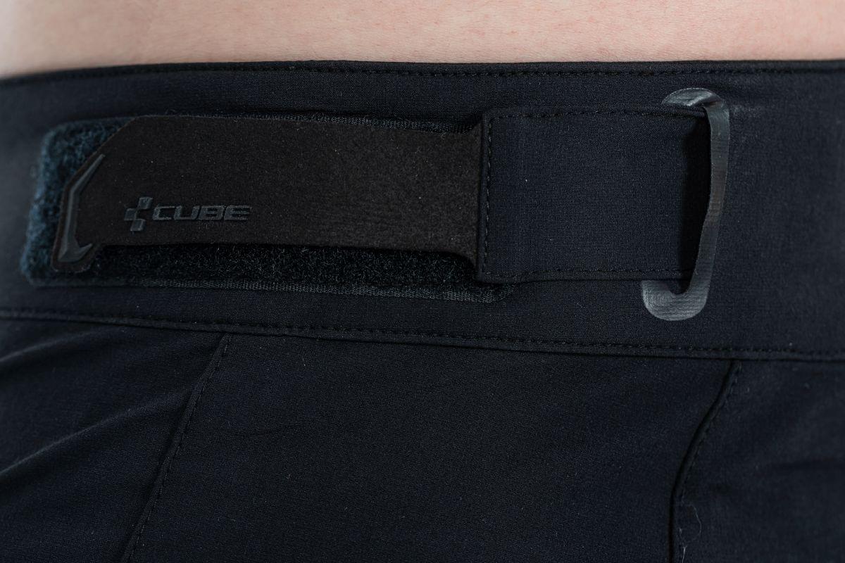 robustes und leichtes Funktionsmaterial, weitenregulierbarer Bund, Fronttasche mit Reißverschluss, mit Innenhose tragbar, reflektierende Elemente, Model ist 184 cm groß, Model trägt Größe M