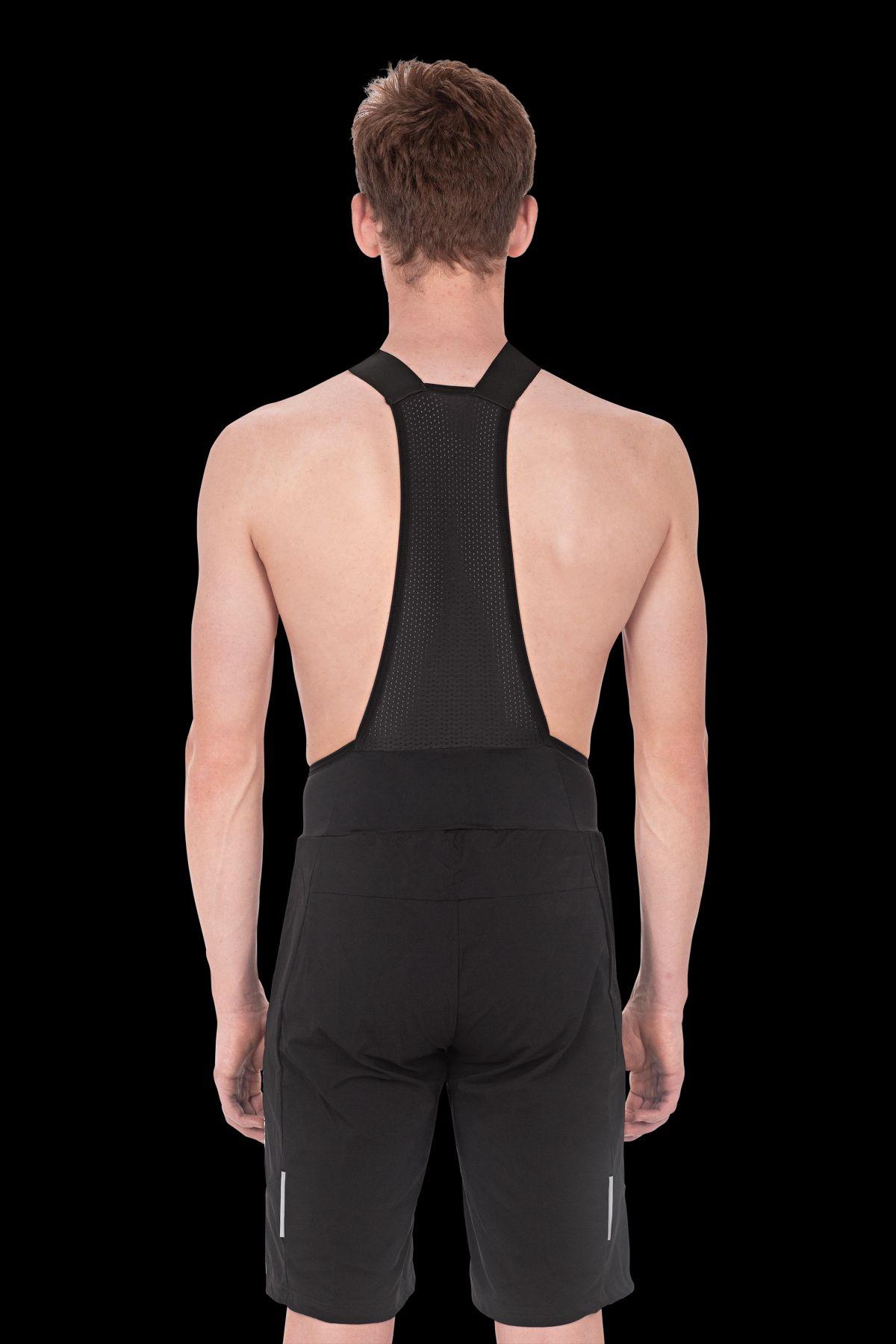 robustes und leichtes Funktionsmaterial, integrierte Trägerhose, anschmiegsame Schulterträger, atmungsaktiver Mesh-Einsatz im Rückenbereich, CUBE Team Pad - hergestellt in Italien, reflektierende Elemente, Model ist 184 cm groß, Model trägt Größe M