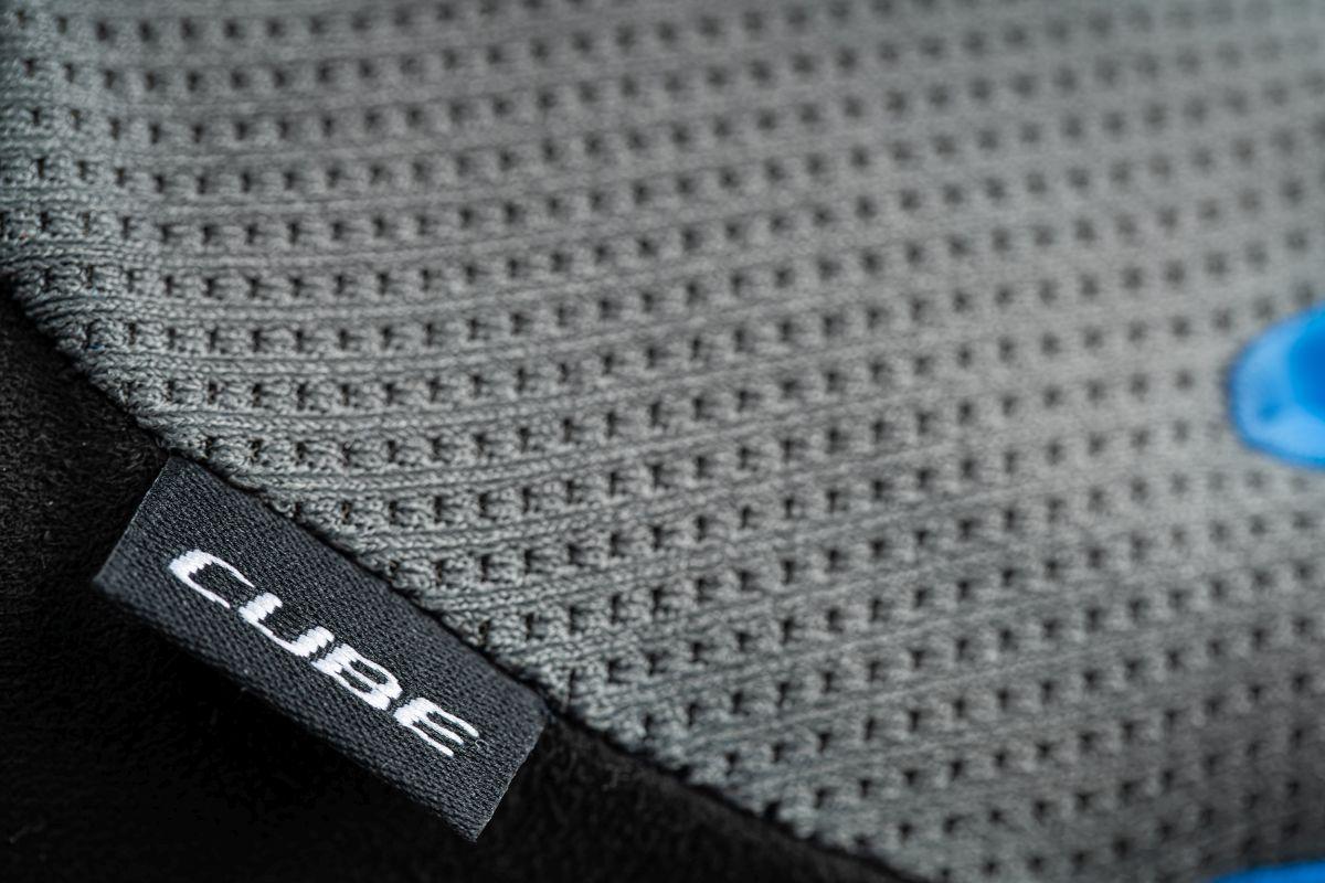 CUBE Natural Fit Polsterung, Grip-Print an Handinnenfläche und Fingerspitzen, Touchscreen Funktion am Zeigefinger, atmungsaktives Obermaterial, belüftete Handinnenfläche, nahtlose Fingerspitzenkonstruktion, verstellbarer Bund, Nano Klettverschluss mit Grip-Print