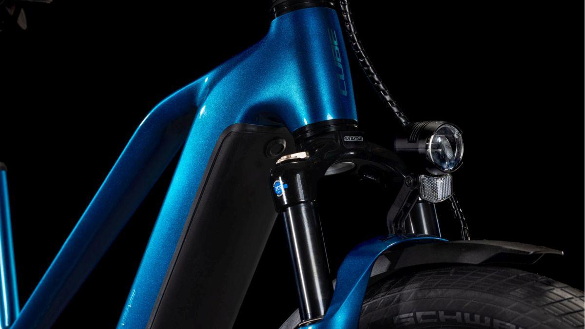 Das Kathmandu Hybrid EX ABS 800 von CUBE hält Touring-Fans auf allen Routen zuverlässig den Rücken frei. Wie? Mit seinen kraftvoll und supersicher verzögernden hydraulischen Magura MT C ABS Scheibenbremsen mit Anti-Blockier-System. Damit hat das Vorderrad durchwegs erstklassigen Grip, und zwar bei jedem Wetter und selbst bei sehr abrupten Bremsmanövern. Der CX Motor von Bosch bringt bis zu 85 Nm Drehmoment – und damit extra viel Schub nach vorn – mit und wird dabei von einem 800 Wh starken PowerTube Akku gespeist. Diesem Set-up haben wir eine einfach bedienbare Shimano Cues 11-Gang Schaltung zur Seite gestellt, welche die Power top übersetzt aufs Hinterrad bringt. Wer mit Gepäck unterwegs ist, ob auf dem Weg ins Büro oder bei einer längeren Wochenendausfahrt, profitiert von unserem anpassbaren und superstabilen integrierten Gepäckträger IC 3.0. Ein Komplettset an Zubehör verleiht diesem Tourer den letzten Schliff. Dein Bike-Abenteuer, dein Fahrspaß!