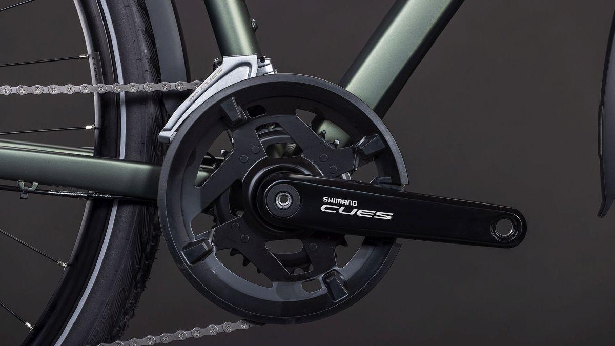 Aufsitzen, antreten und die Tour genießen: Mit dem schlichten Kathmandu ONE von CUBE bekommen Entdecker einen robusten und flexibel anpassbaren Alleskönner unter den Sattel. Auf dem stabilen, vielseitigen integrierten Gepäckträger IC 3.0 findet alles Platz, was unterwegs mit muss. ACID Schutzbleche, Vorder- und Rücklichter und ein Flat Mount Seitenständer sind auch mit dabei. Dazu hat die einfach bedienbare Cues 2x9-fach Schaltung aus dem Hause Shimano in jeder Situation den passenden Gang im Angebot. Ebenso von Shimano kommen die hydraulischen Scheibenbremsen für sicheres Verzögern und Anhalten bei jedem Wetter. Angenehmer Fahrkomfort, auch auf holprigen Wegen, ist das Spezialgebiet der Suntour Federgabel. Umweltbonus: Die spezielle Gummimischung der Green Marathon Reifen von Schwalbe besteht zum Großteil aus recycelten Altreifen – für nachhaltige Mobilität auf allen Wegen. Da kann's doch direkt losgehen, oder?