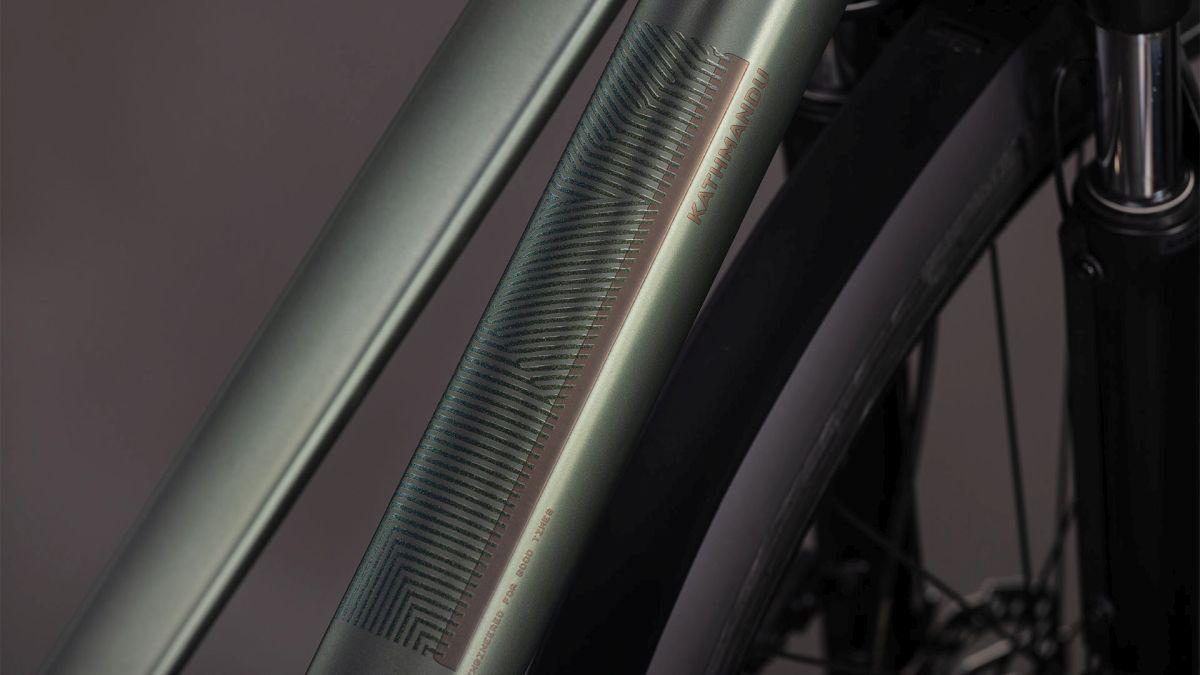 Der Trapezrahmen des Kathmandu aus dem Hause CUBE ist ein Sinnbild für klassische Eleganz! Der integrierte Gepäckträger IC 3.0 geht nahtlos und formschön in unsere ACID Schutzbleche über. Dazu gibt's am Hinterrad Aufnahmen für eine Flat Mount Scheibenbremse und einen Seitenständer. Seine cleane, aufgeräumte Optik verdankt das Chassis den im Smooth Welding Verfahren gestalteten Rohrverbindungen und im Unterrohr verlaufenden Zügen. So viel zum Aussehen. In Sachen Funktion haben wir den Hinterbau mit einer Steckachse versehen und ein konisches Steuerrohr für optimierte Stabilität und Lenkpräzision (selbst bei voller Beladung) verbaut. Also alles da, was es auf Tour braucht – den Rest machst du!
