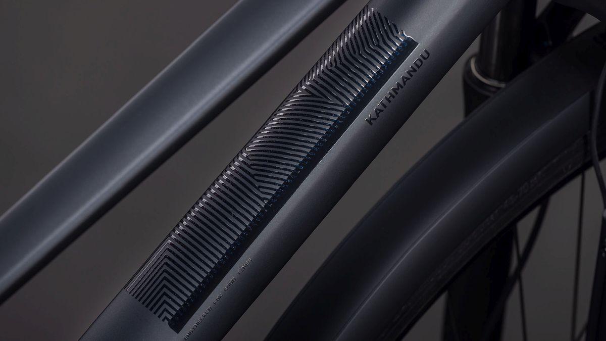 Der Trapezrahmen des Kathmandu aus dem Hause CUBE ist ein Sinnbild für klassische Eleganz! Der integrierte Gepäckträger IC 3.0 geht nahtlos und formschön in unsere ACID Schutzbleche über. Dazu gibt's am Hinterrad Aufnahmen für eine Flat Mount Scheibenbremse und einen Seitenständer. Seine cleane, aufgeräumte Optik verdankt das Chassis den im Smooth Welding Verfahren gestalteten Rohrverbindungen und im Unterrohr verlaufenden Zügen. So viel zum Aussehen. In Sachen Funktion haben wir den Hinterbau mit einer Steckachse versehen und ein konisches Steuerrohr für optimierte Stabilität und Lenkpräzision (selbst bei voller Beladung) verbaut. Also alles da, was es auf Tour braucht – den Rest machst du!