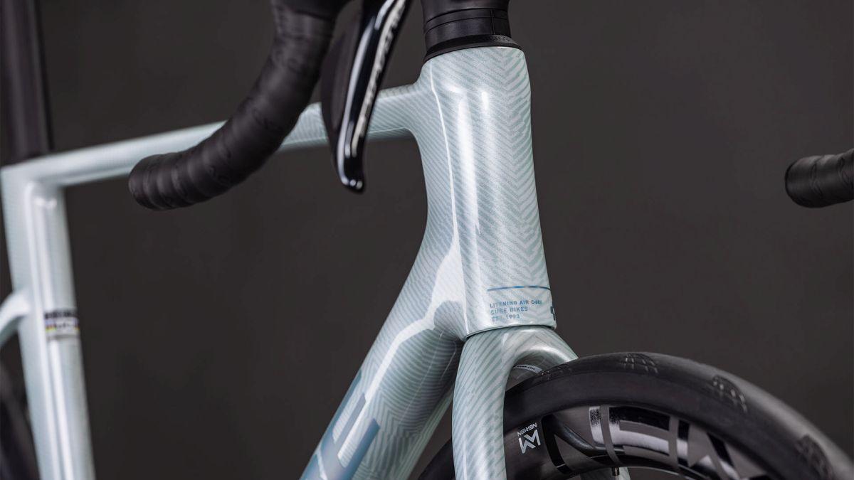 Qualität steckt im Detail – unser Credo bei CUBE. Der Litening® AIR ist mehr als nur ein leichter Rahmen: Gemeinsam mit den Profis von Team Intermarché-Wanty haben wir ihn auf ein neues Level gehoben. Mit nur rund 799 g in mittlerer Größe ist er die schlanke, ultraleichte Basis für ein UCI-konformes Race-Bike, das gerade einmal 6,6 kg wiegt. Für die SLT Variante sind wir noch einen Schritt weitergegangen und haben ein neues One-Piece-Carbon-Cockpit entwickelt, wodurch das Bike noch besser im Wind steht als zuvor, was bis zu acht Watt spart! Praktisch: Die integrierte Halterung für deinen Radcomputer sorgt dafür, dass du alle Leistungs- und Geschwindigkeitsdaten jederzeit im Blick hast!