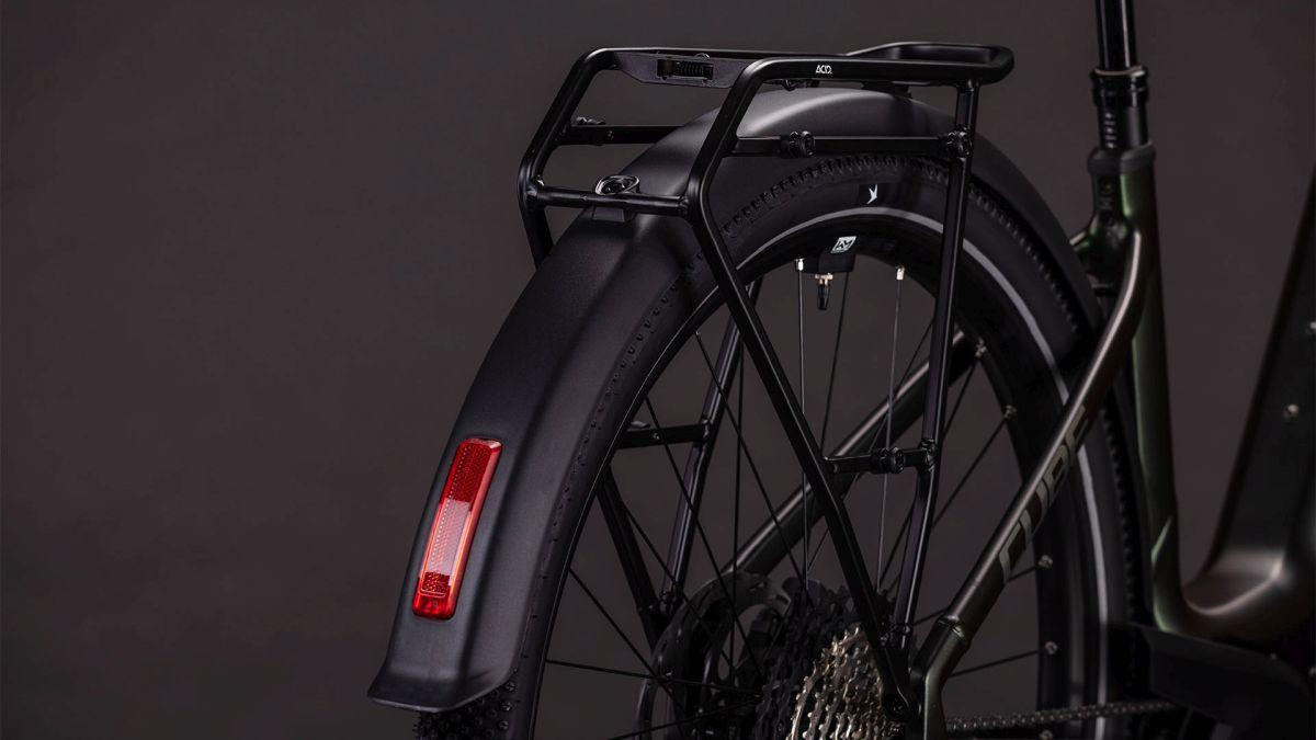 Der Tiefeinsteiger-Rahmen des Nuride Hybrid hält, was sein Name verspricht – einfaches, unkompliziertes Auf- und Absteigen sind damit fix inklusive. Doch da ist noch mehr: Neben einer Federgabel mit 100 mm Federweg für ein Plus an Fahrkomfort und Kontrolle haben wir das Chassis mit großzügiger Reifenfreiheit (sogar inklusive der mitgelieferten Schutzbleche) ausgestattet. Im Inneren verlaufende Züge unterstreichen die cleane Optik. Ebenso harmonisch ins Rahmendesign integriert sind der Bosch CX Antrieb und der 800 Wh PowerTube Akku. On top gibt's einen integrierten Kettenschutz, serienmäßig verbaute Schutzbleche, Lichter, einen Seitenständer und unseren stabilen semi-integrierten Gepäckträger 2.0. Da kann das nächste Zweiradabenteuer direkt losgehen, oder?
