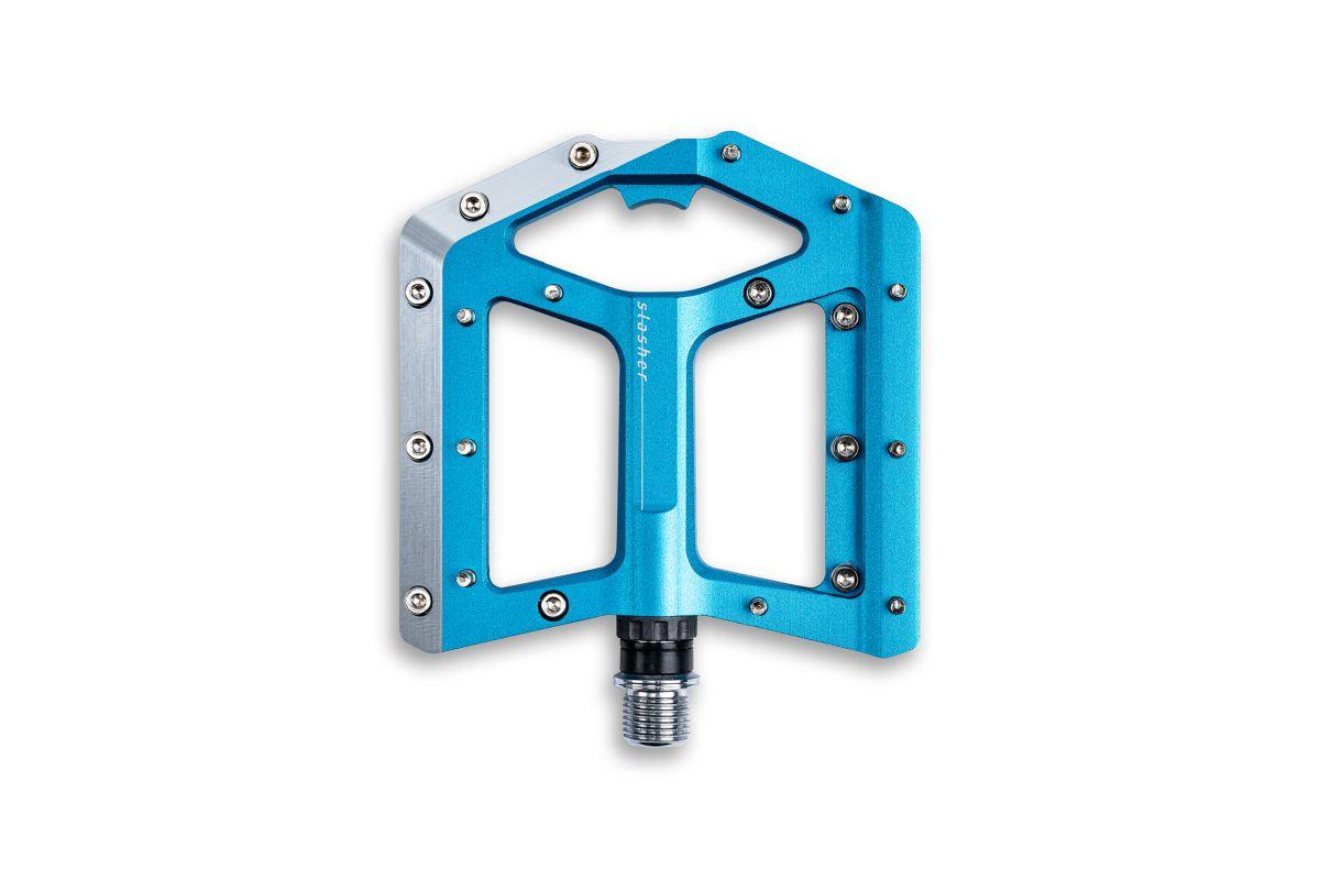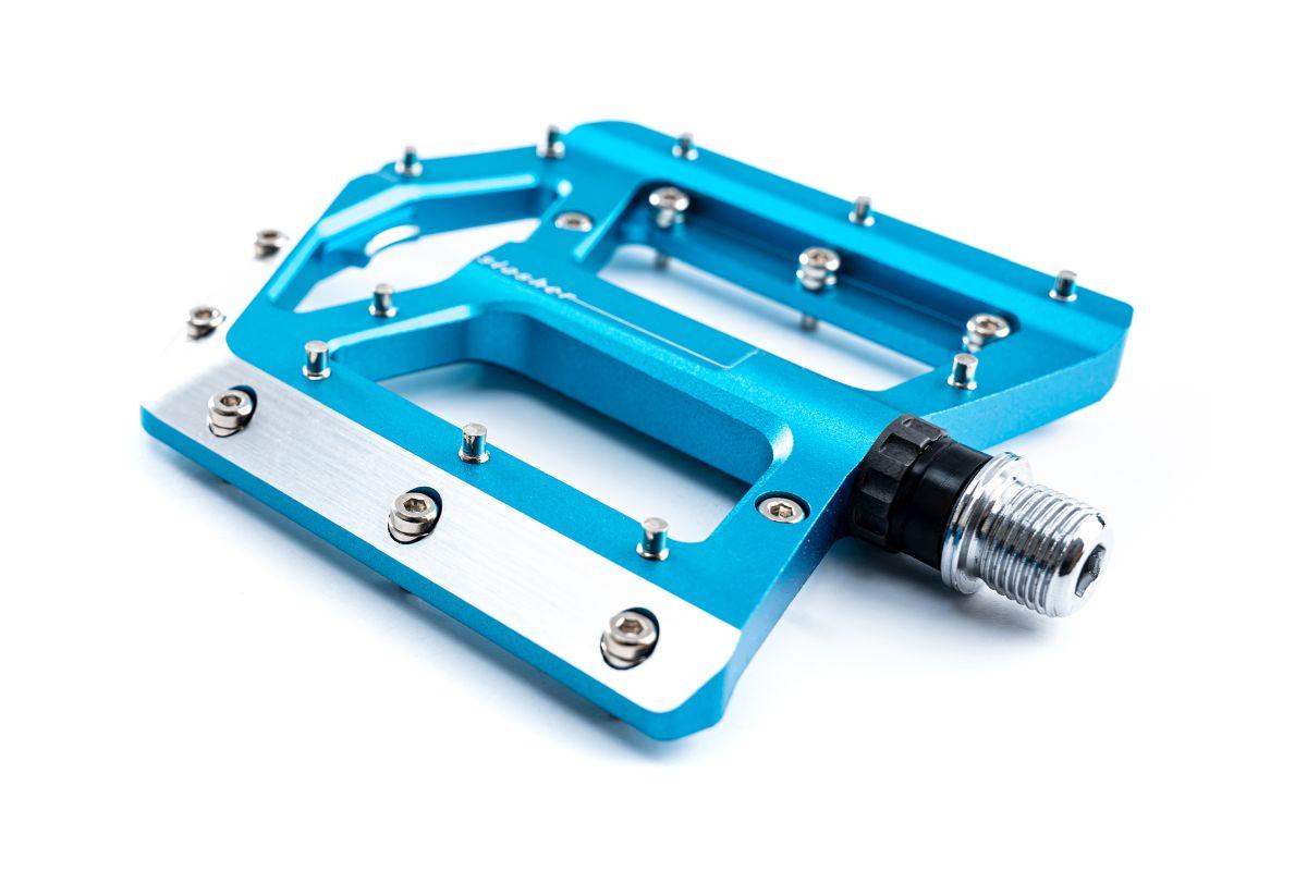 CNC-gefräster Aluminiumkörper, 10 austauschbare Pins, 2 Industrielager und 1 Gleitlager pro Pedal,CroMo-Achse, Pinhöhe über Unterlegscheiben einstellbar, integrierter Flaschenöffner