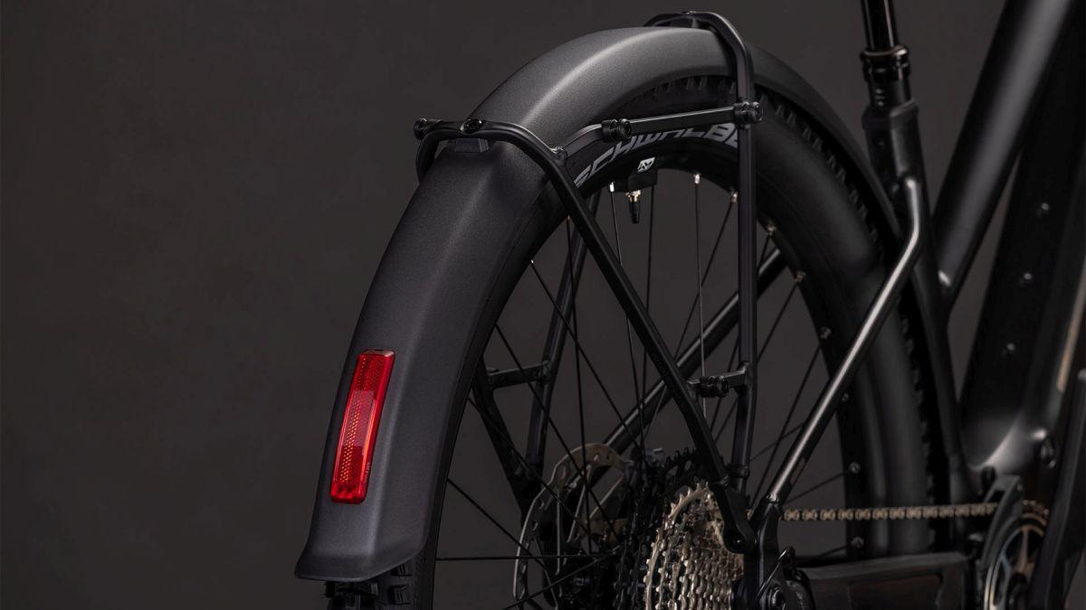 Weil wir dem Reaction Hybrid SLX FE ein Komplettset an Zubehör – Schutzbleche, Gepäckträger, Seitenständer und Lichtanlage – spendiert haben, ist es jeder Herausforderung gewachsen, ob täglicher Weg ins Büro oder lange Wochenendausfahrt ins Grüne. Dabei arbeiten der leistungsstarke Bosch CX Motor, der 800 Wh starke Akku und die breit gefächerte Shimano XT 12-fach Schaltung auf allen Routen und Anstiegen effizient Hand in Hand. Für erstklassigen Fahrkomfort auf holprigen Strecken haben wir eine Fox 34 Float AWL Federgabel verbaut. Wetterunabhängig sicher gebremst wird mit beherzt zupackenden hydraulischen XT 4-Kolben-Scheibenbremsen aus dem Hause Shimano. Dazu gibt's steife und zugleich leichte Newmen Performance 30 Laufräder, auf die wir 2.6 Zoll Schwalbe Pneus aufgezogen haben, und eine versenkbare Sattelstütze. Kurz: der perfekte Partner für mega Fahrspaß auf sämtlichen Touren!
