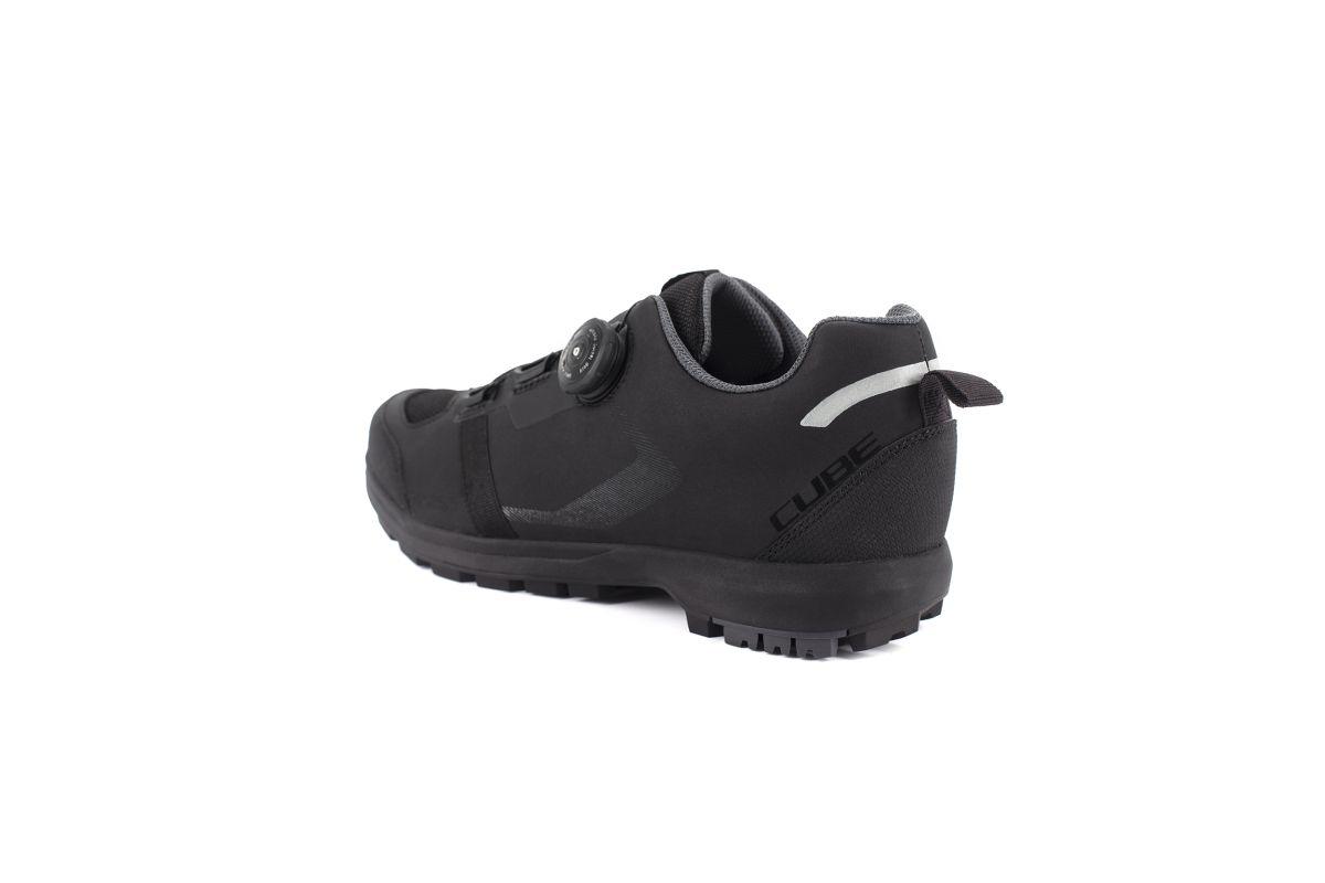 Stylischer All Terrain Schuh mit fortschrittlichem Drehverschluss und toller Passform dank ergonomisch optimierten CUBE Natural Fit Leisten und Innensohle. Clevere Features wie die Einstiegshilfe und der Laceholder machen das Leben leichter, während die griffige Gummi-Außensohle für Klickpedale auch beim Gehen tollen Halt gibt. Das robuste Obermaterial und die verstärkte Zehenkappe schützen den Fuß, dank Luftlöcher und Mesh-Konstruktion bleibt selbiger aber immer angenehm belüftet. Das reflektierende Fersenelement schenkt zusätzliche Sicherheit durch mehr Sichtbarkeit bei schlechten Lichtverhältnissen.