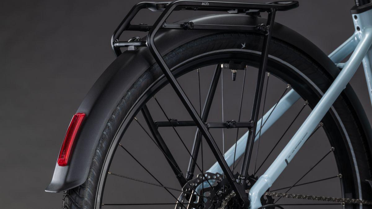 Bei der Entwicklung unseres Touring Hybrid Rahmens standen Vielseitigkeit, einfaches Handling und hoher Fahrkomfort ganz oben auf der Liste. Deshalb haben wir ihm auch direkt einen ebenso stabilen wie stylishen semi-integrierten Gepäckträger 2.0 spendiert. Darauf findet bequem alles Platz, was auf Tour mit muss. Auch der leistungsstarke Bosch Performance Motor fügt sich samt 600 Wh PowerTube Akku so formschön ins Design ein, dass er kaum auffällt. Was aber natürlich auffällt, ist der tolle Support im Vorwärts! Für ein komfortables und zugleich kontrolliertes Fahrgefühl, selbst auf holprigen Strecken, sind unsere Efficient Comfort Geometry und die Federgabel mit ihren 100 mm Federweg zuständig. Was noch? Ein ACID Kettenschutz, ein Seitenständer, Schutzbleche und Lichter.