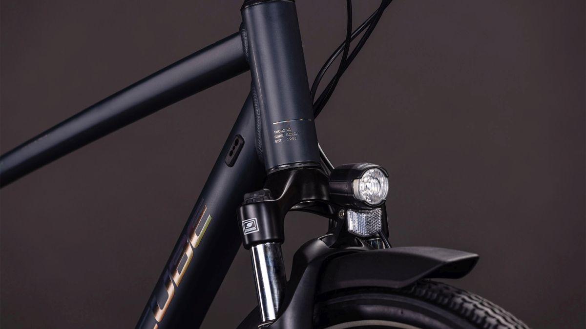 Das Herzstück eines Bikes ist zweifellos sein Rahmen – deshalb haben wir bei der Entwicklung des Touring auch wieder extra viel Sorgfalt walten lassen und Wert auf hohen Fahrkomfort und unkompliziertes Handling gelegt. So macht unsere Efficient Comfort Geometry ihrem Namen alle Ehre: Sie fährt sich zuverlässig, intuitiv und selbst auf den längsten Ausfahrten dauerhaft komfortabel. Es gibt zudem ganze fünf Diamantrahmen-Größen zur Auswahl – so finden alle das für sich und ihre Anforderungen passende Set-up. Bei allen Varianten inkludiert sind unser formschöner, stabiler semi-integrierter Gepäckträger 2.0, der Flat Mount Seitenständer und sauber ins Unterrohr verlegte Züge, was die cleane, aufgeräumte Optik der doppelt konifizierten Aluminiumrohrsätze unterstreicht.