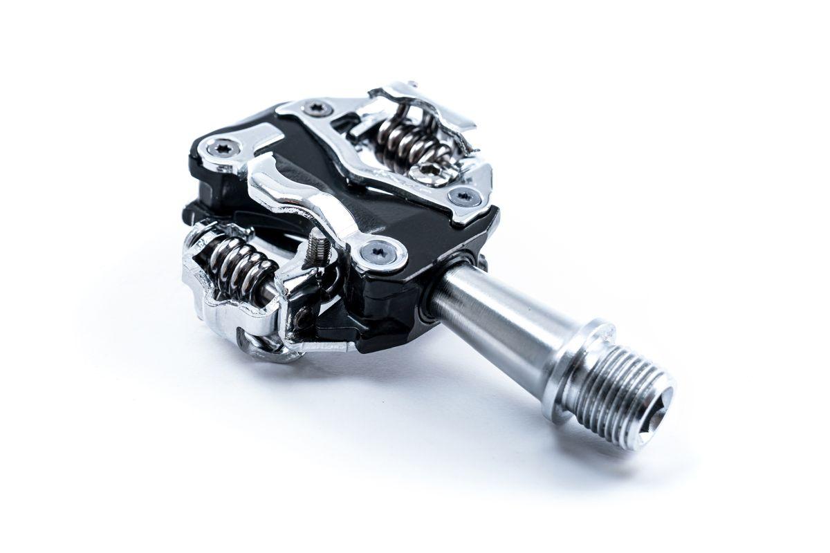 Geschmiedetes Highend Klick-Pedal mit zweiseitigem Klick-System, CNC-gefräster CrMo-Achse und LSL-Bushing. SPD-kompatibel.